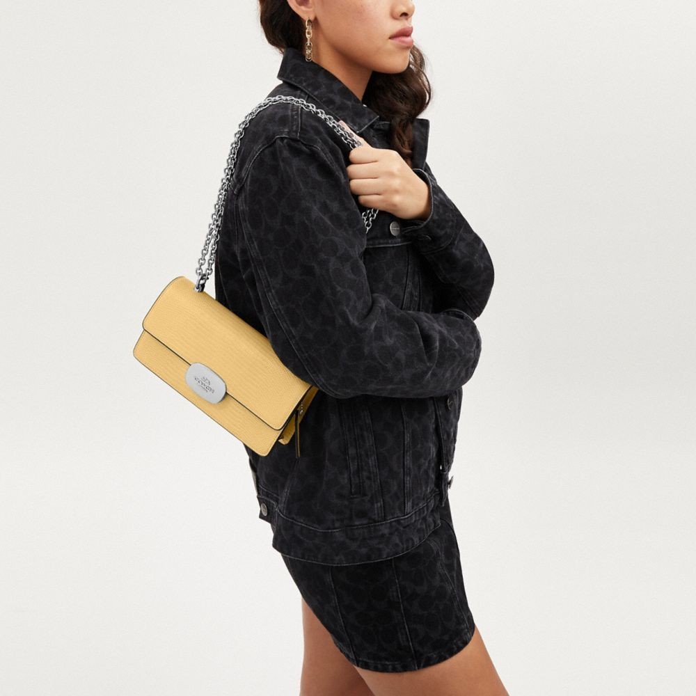 【COACH】ELIZA翻蓋斜背手袋-SV/乾草色(CR106)|官方直營SV/乾草色COACH官方旗艦店