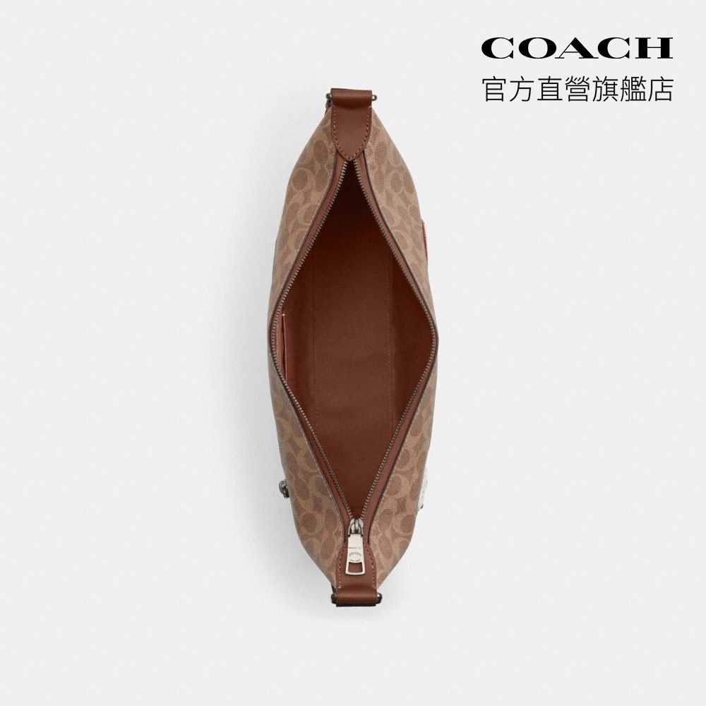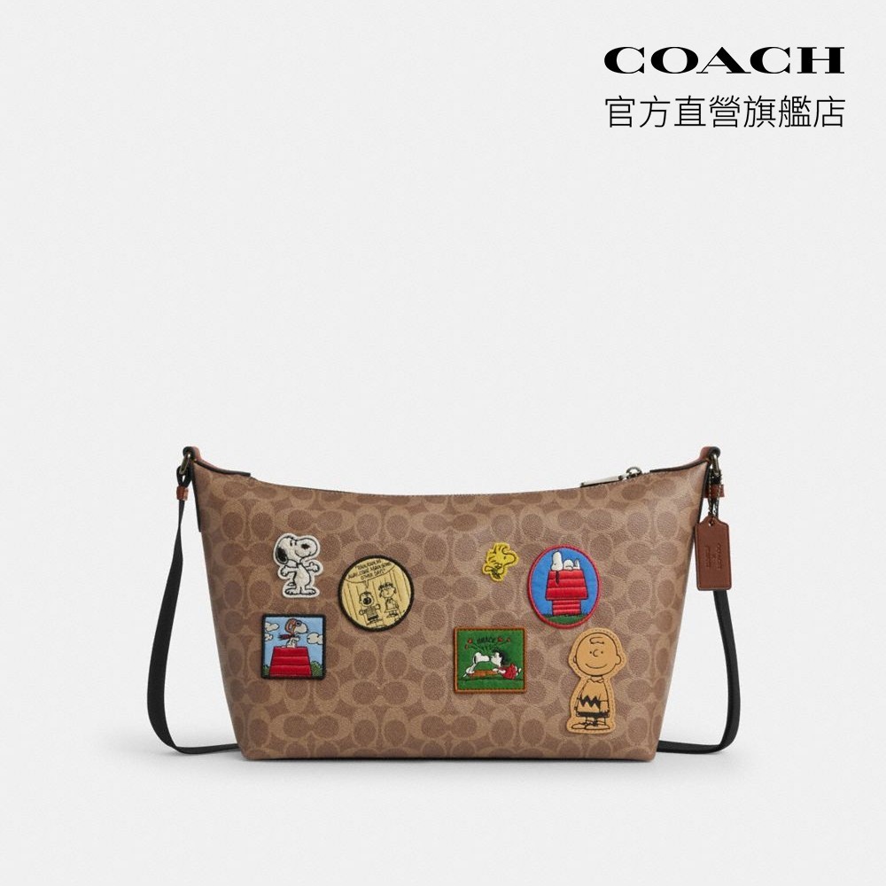 【COACH】COACH X PEANUTS FINN經典Logo貼飾斜背手袋 史努比聯名|官方直營青銅色硬體/棕黃色 混合色COACH官方旗艦店