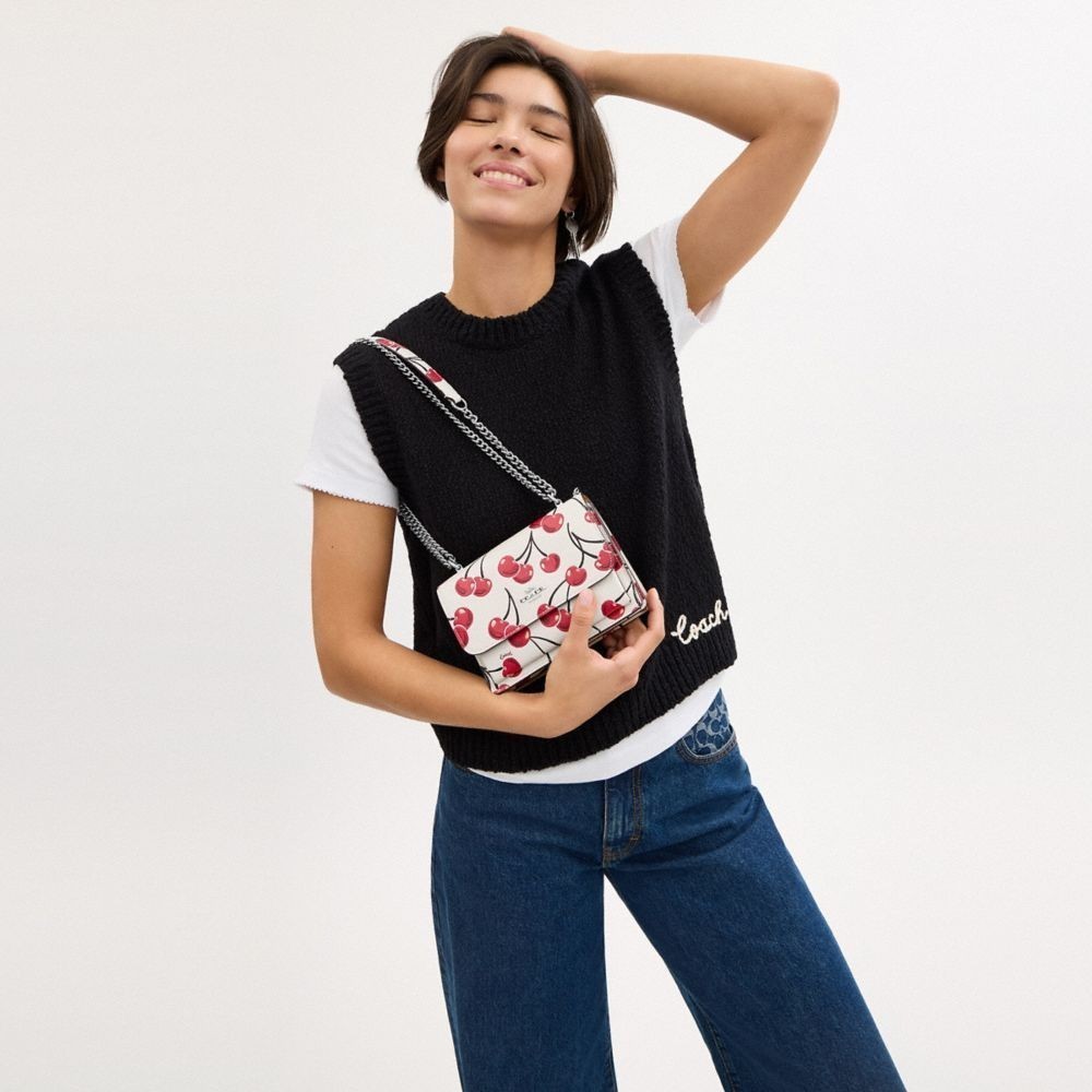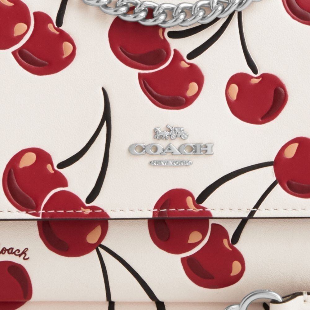 【COACH】KLARE櫻桃印花迷你斜背手袋-銀色硬體/白堊彩(CY717)|官方直營銀色硬體/白堊彩COACH官方旗艦店