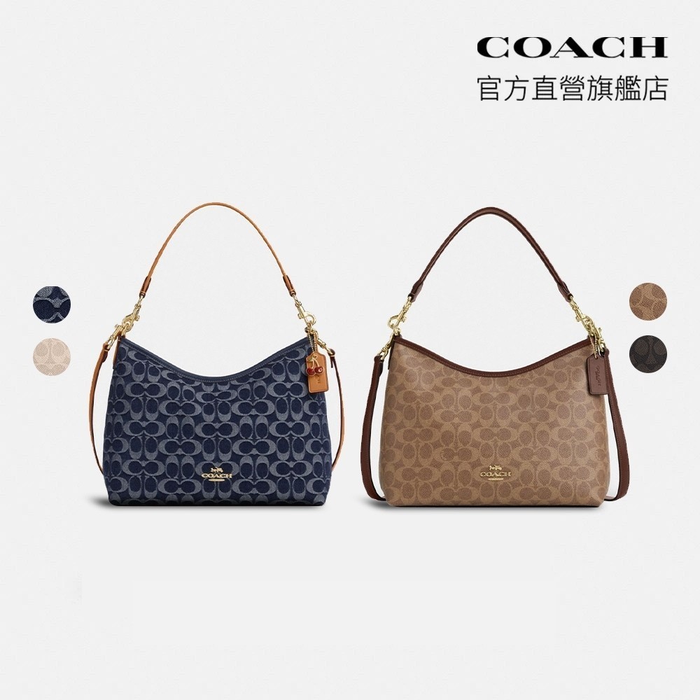 【COACH】LAUREL 經典Logo單肩包-多色任選(CV975/CY702)|官方直營IM/胡桃木色/黑色|IM/丹甯藍色/天然色|SV/沙黃色/灰褐色|IM/棕黃色/棕色COACH官方旗艦店