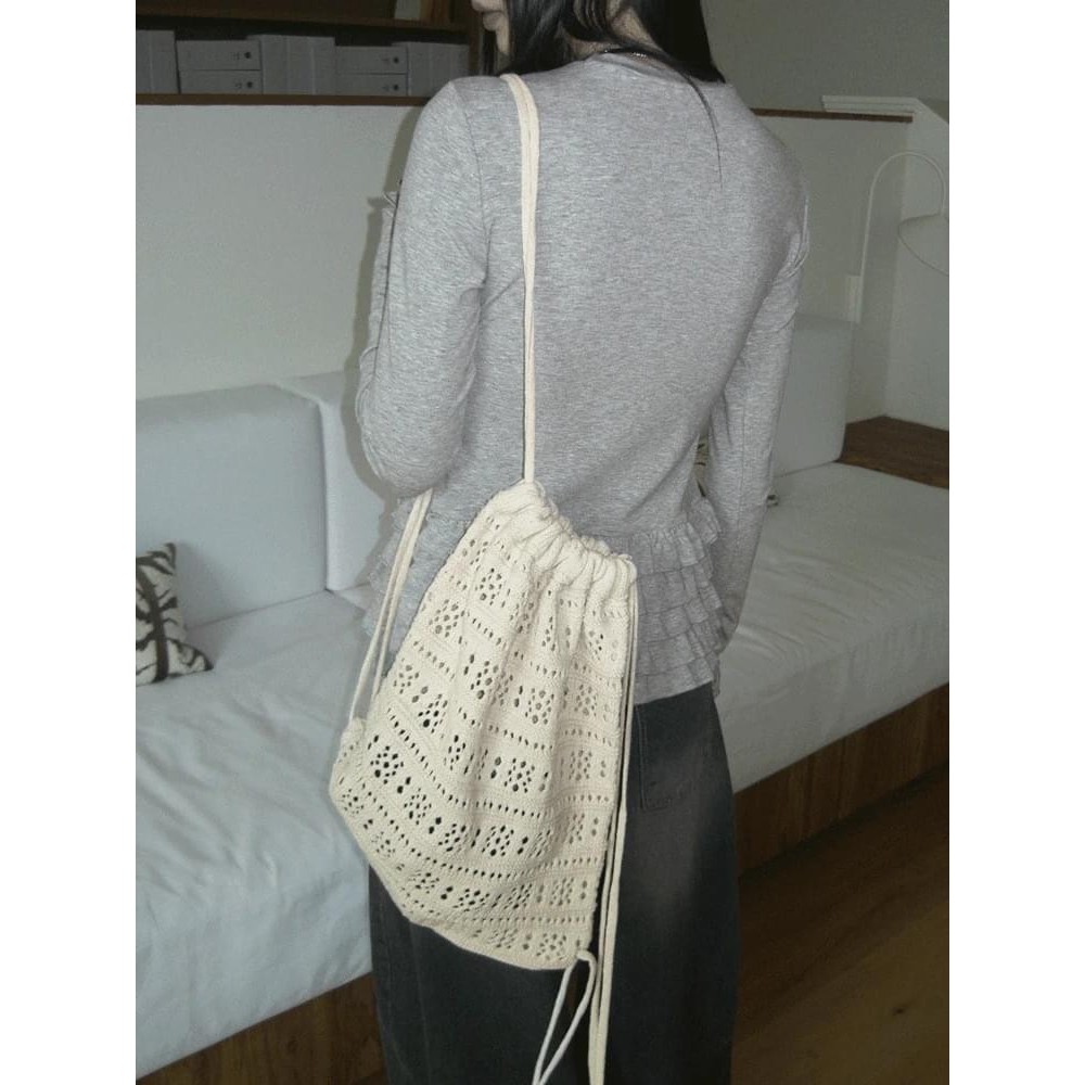 Codibook|韓國 wonderwonder 波浪鏤空編織抽繩後背包[預購]背包 crossbody-bag 女裝象牙白|黑色Codibook 韓國女裝購物平台