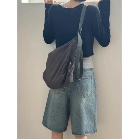 Codibook|韓國 DAILYJOU 拉繩尼龍斜背包[預購]肩背包 女裝卡其色|灰色|黑色Codibook 韓國女裝購物平台