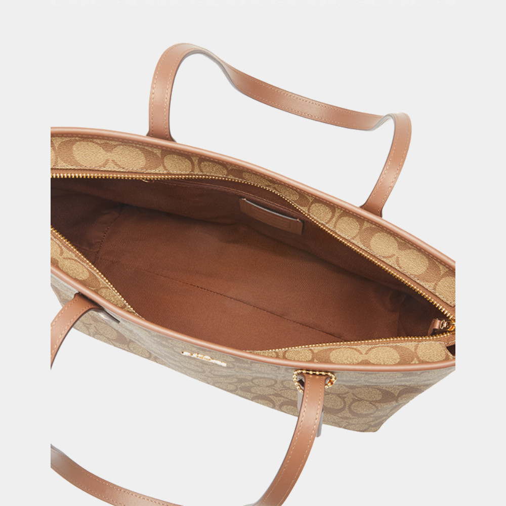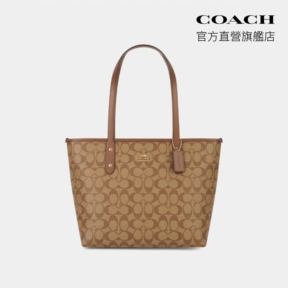 【COACH】CITY經典Logo拉鍊托特包-IM/卡其色/馬鞍棕色2(58292)|官方直營IM/卡其色/馬鞍棕色2COACH官方旗艦店