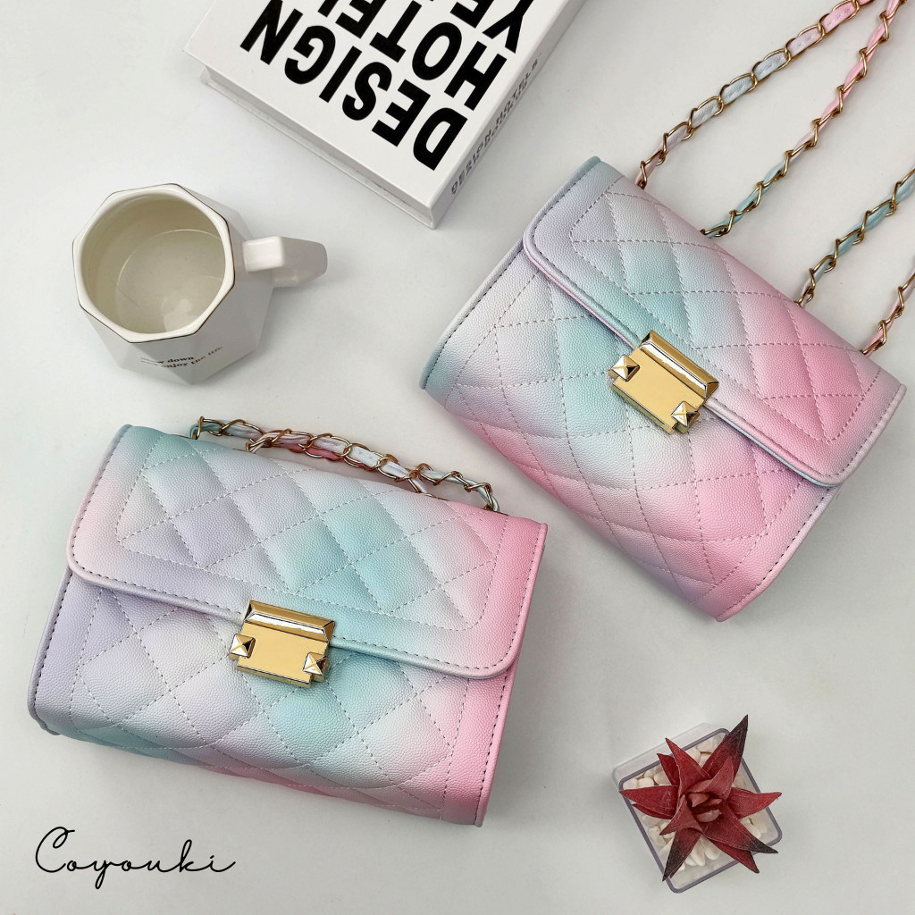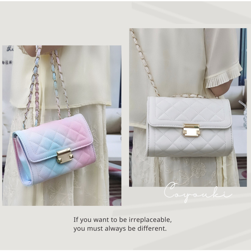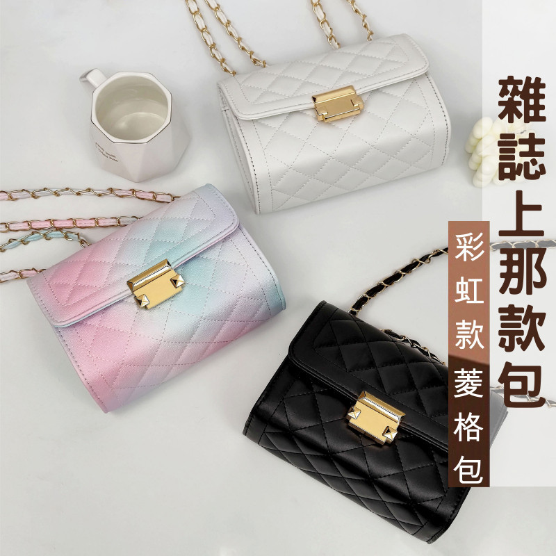 COYOUKI 網紅指定款 彩虹斜背包 夏季百搭 新款潮時尚 鏈條斜挎包 夏天菱格單肩 小方包【全館包包享保固】米白+保固半年|COYOUKI品牌獨角獸粉+保固半年|品牌獨家獨角獸粉-大款可放長夾+保固半年|黑色+保固半年|容量升級款黑色(可放長夾)+保固半年|容量升級款白色(可放長夾)+保固半年COYOUKI日本設計師品牌