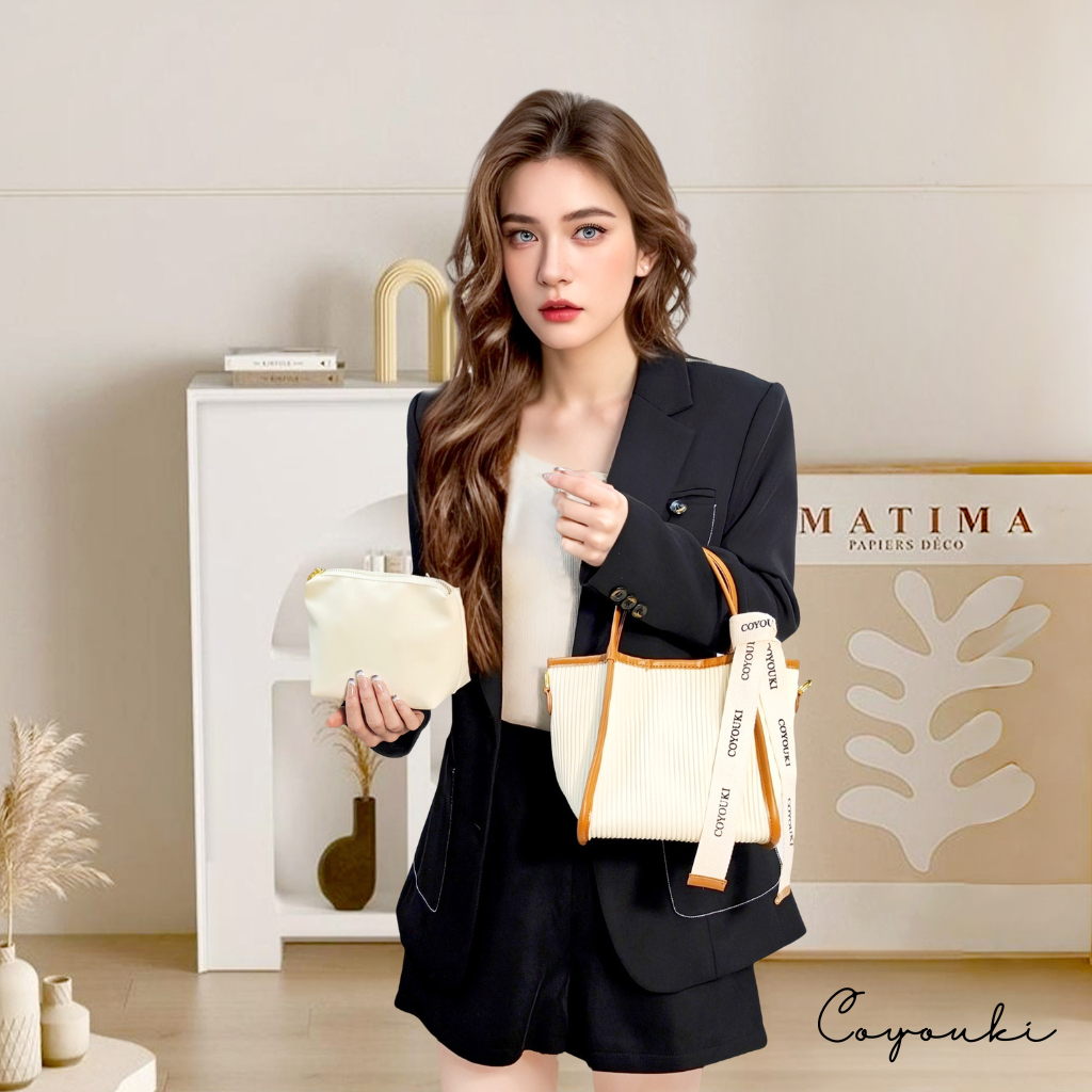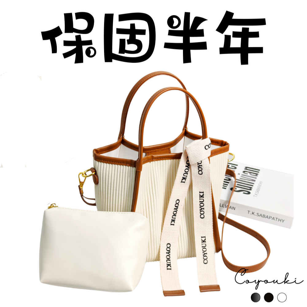 COYOUKI 韓版大容量手提包 斜背包 子母包 托特包 手提水桶包 通勤包 多功能包 【全館包包享保固】白配黑【送背帶+小包】+保固半年|白配焦糖【送背帶+小包】+保固半年|黑色【送背帶+小包】+保固半年|專櫃展示包隨機色【送小包無背帶】無保固|專櫃款白配黑【送背帶+小包】+保固一年|專櫃款白配焦糖【送背帶+小包】+保固一年COYOUKI日本設計師品牌