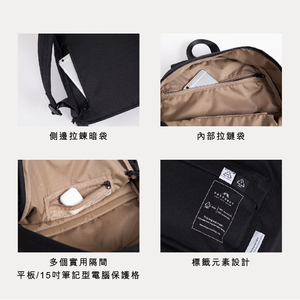 DOUGHNUT官方賣場 15.6吋 Plus One 經典大學包 後背包 防潑水 多格層 減壓背帶 RE綠灰色|粉色|石色(偏卡其)|黑色|象牙Laptop BackpacksDOUGHNUT | 台灣商城