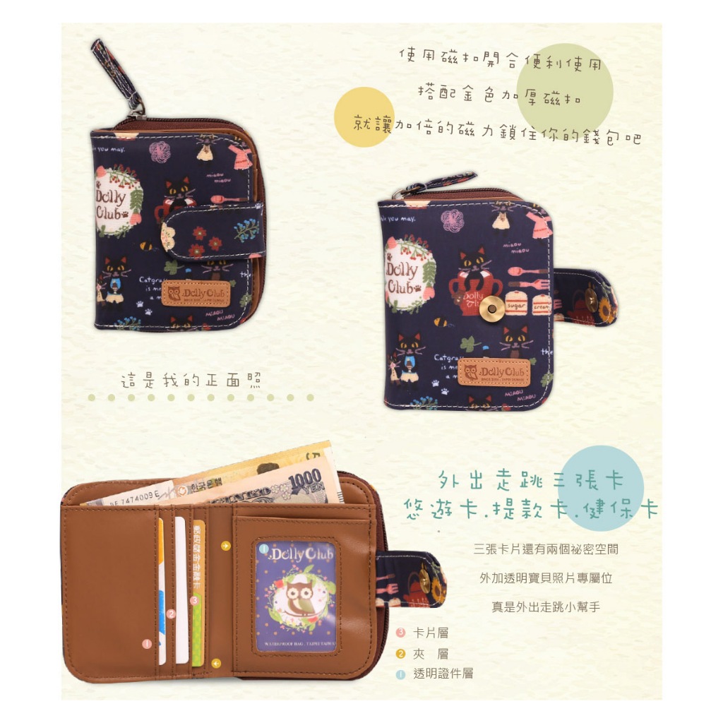 【Dolly Club】多色可選 零錢短夾 錢包 零錢包 大零錢袋 皮夾 女短夾 拉鍊袋零錢包 貓咪碎花台灣製造191|343|201|291|298|299|300|373|374|658|659|660|919PBifold & Trifold WalletsDolly Club 防水布包專門店