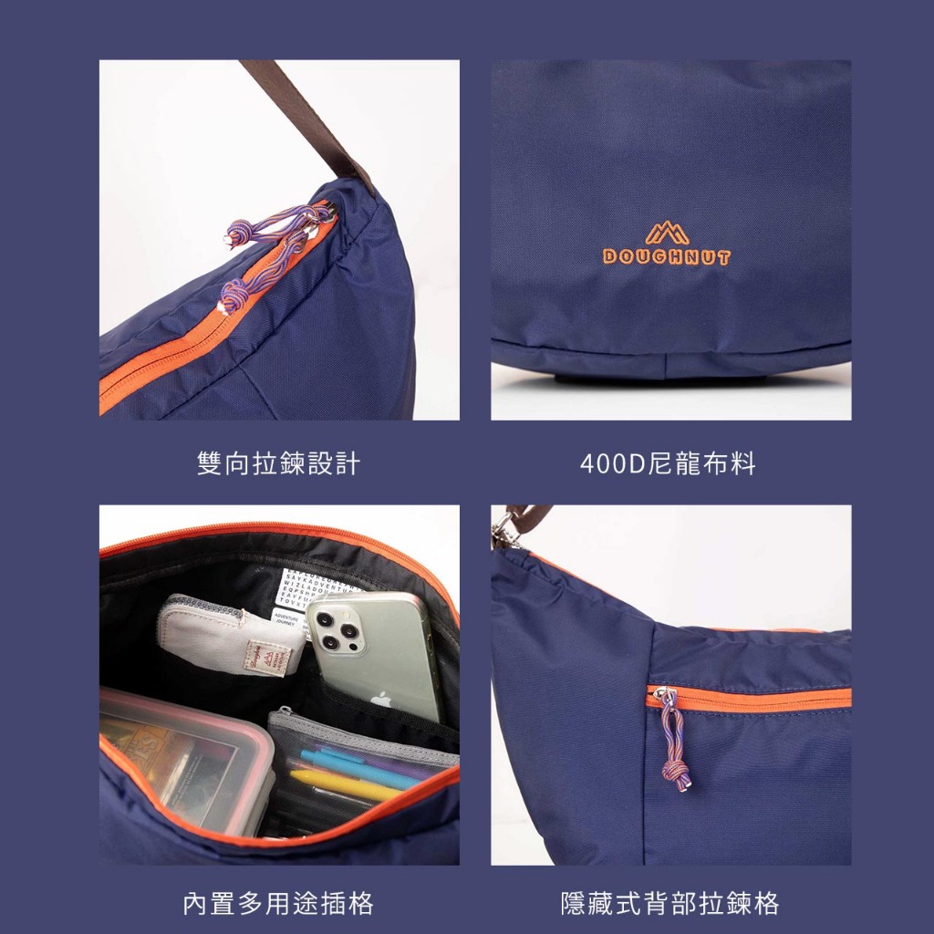 DOUGHNUT官方賣場 Croissant 大可頌包 半月包 斜背包 防潑水 輕便隨身 大容量 YU黑|白|深藍DOUGHNUT | 台灣商城