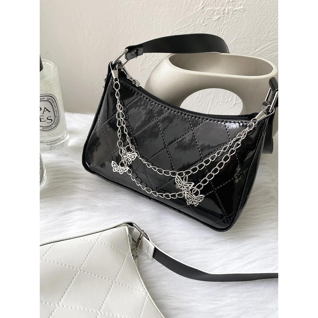 Codibook|韓國 ondeed 亮面絎縫蝴蝶鏈單肩包[預購]肩背包 女裝黑色|白色Codibook 韓國女裝購物平台