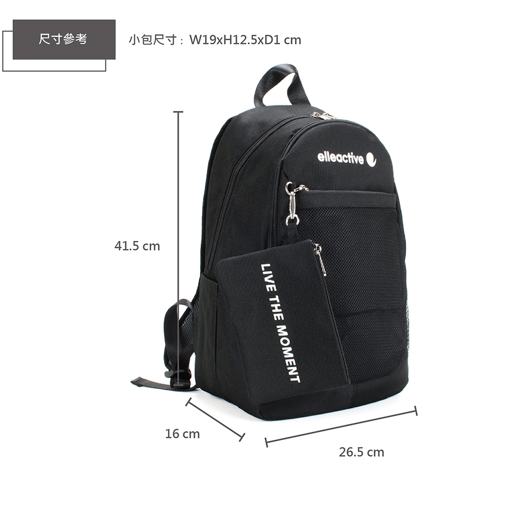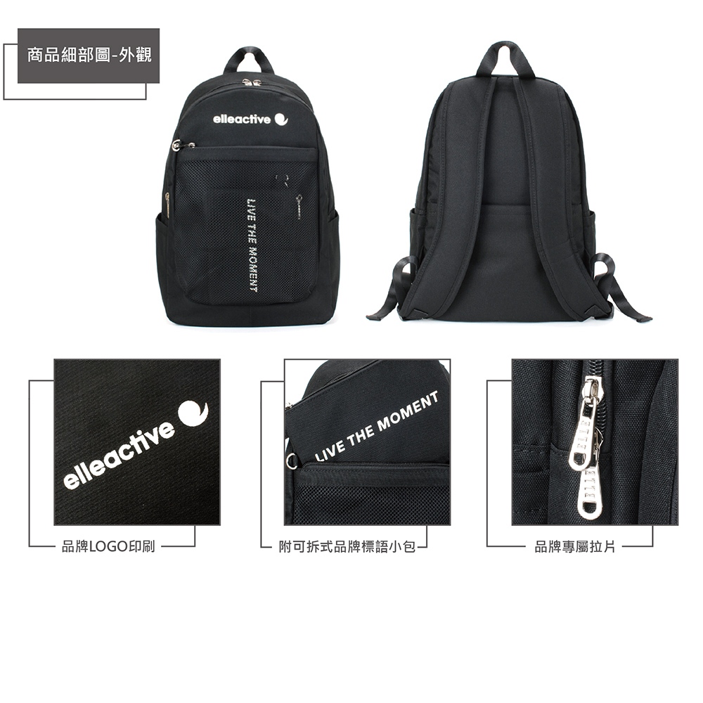 【ELLE Active】活力隨行系列-後背包-中-黑色