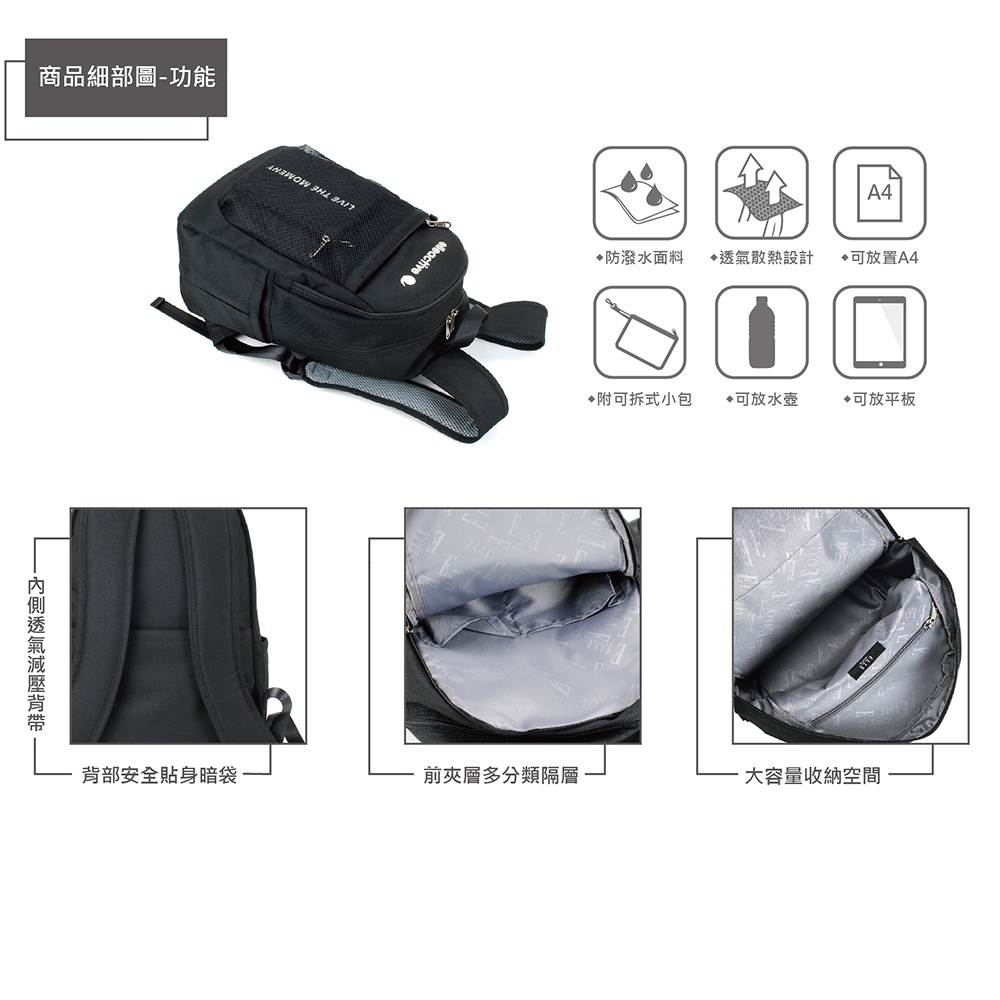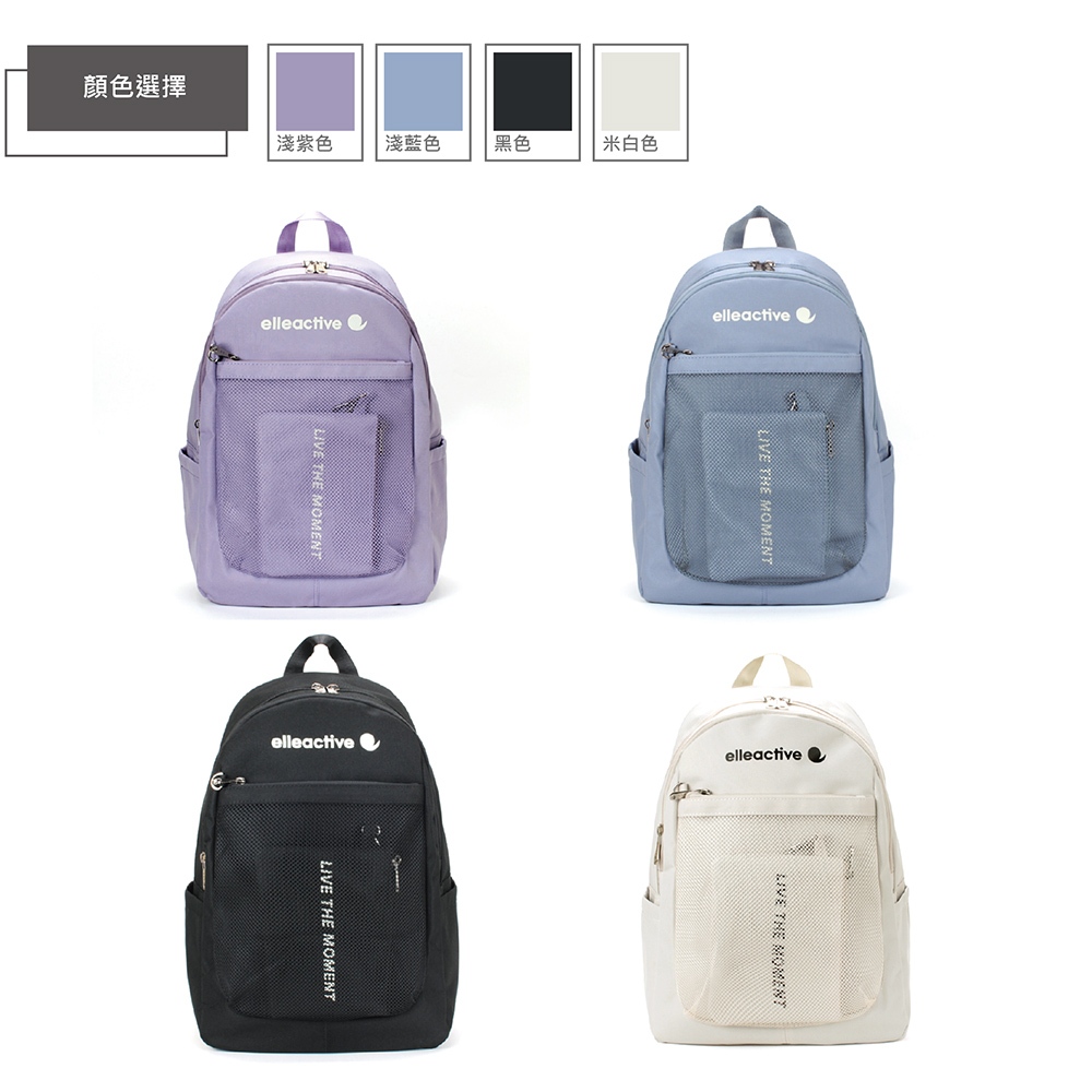 【ELLE Active】活力隨行系列-後背包-中-黑色黑ELLE_Bag 官方旗艦店