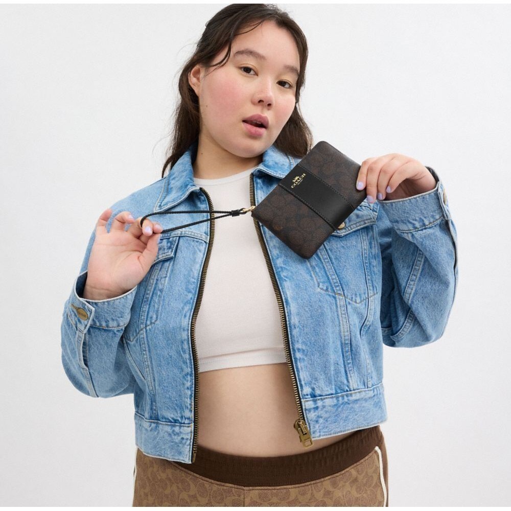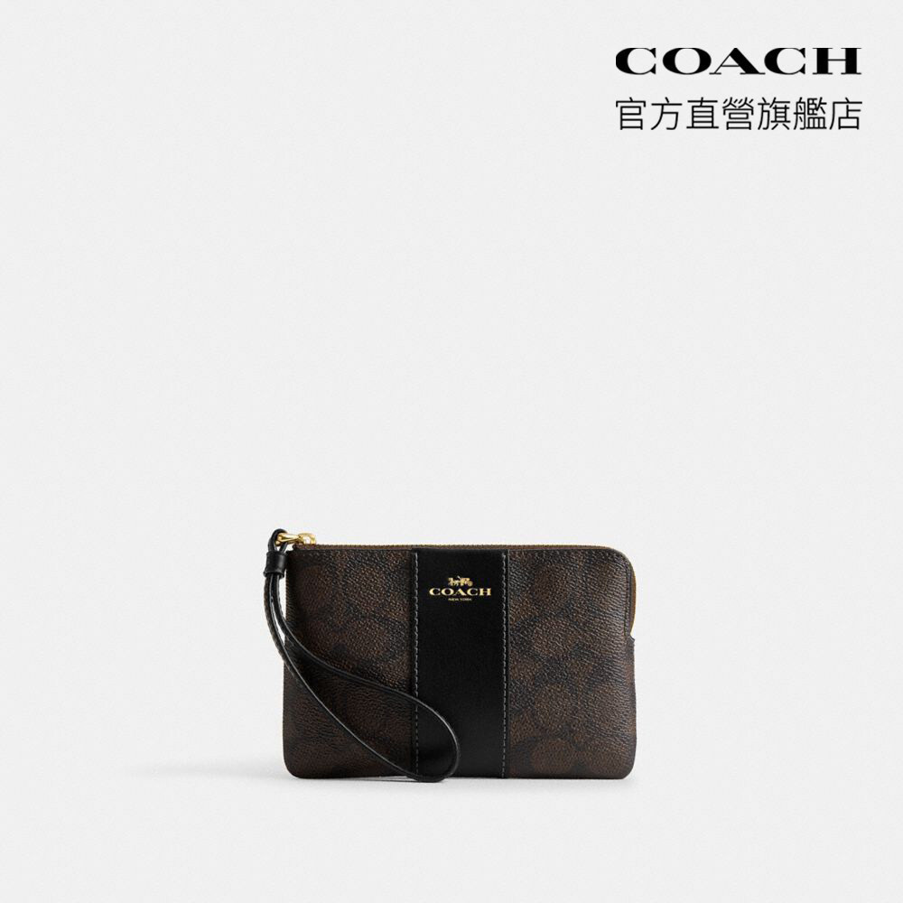 【COACH】經典Logo條紋圖案拉鍊手拿包 手腕包-IM/胡桃木色/黑色(CW854)|官方直營IM/胡桃木色/黑色COACH官方旗艦店