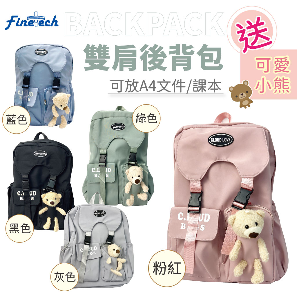 【2件460元】日韓風可愛背包 雙肩包 休閒背包 小熊背包 學生背包 後背包 大容量 電腦包 旅行包 多隔層 防潑水粉色(附熊玩偶)|藍色(附熊玩偶)|黑色(附熊玩偶)|灰色(附熊玩偶)|綠色(附熊玩偶)Laptop BackpacksFinetech釩泰醫用口罩生活用品官方旗艦館