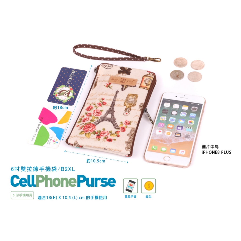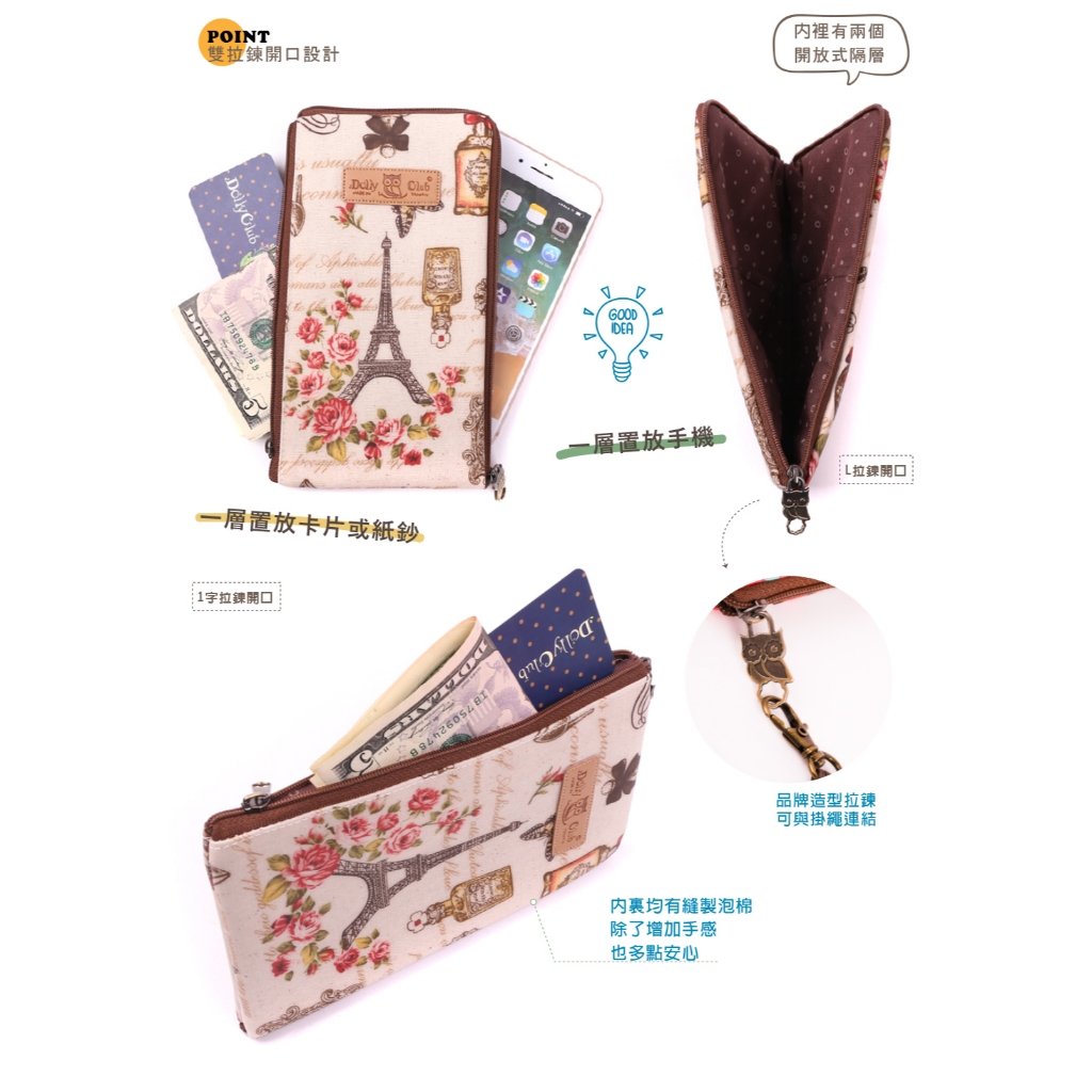 【Dolly Club】雙拉手機包 多色可選 iphone 6.7吋 手機套 附手挽繩 防水印花布包 花卉 台灣製1455|1456|1397|1394|1400|1391|1371Phone & Key WalletsDolly Club 防水布包專門店