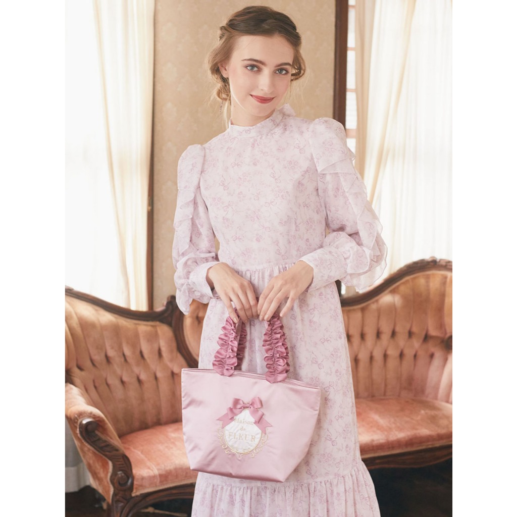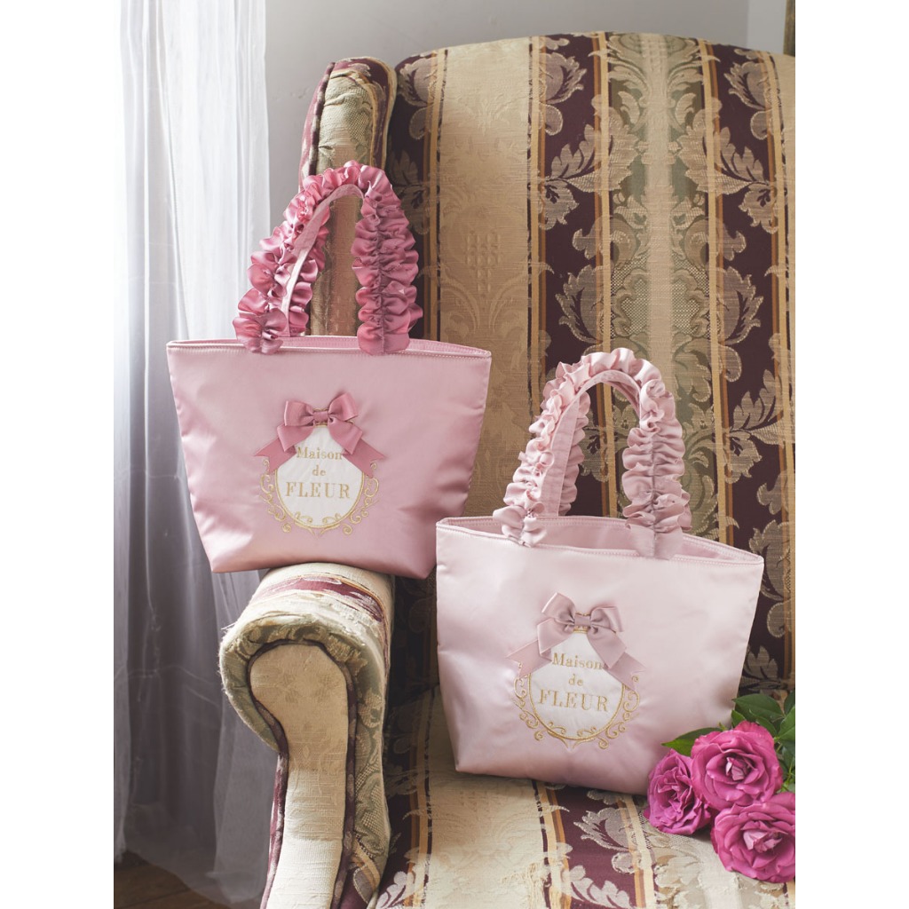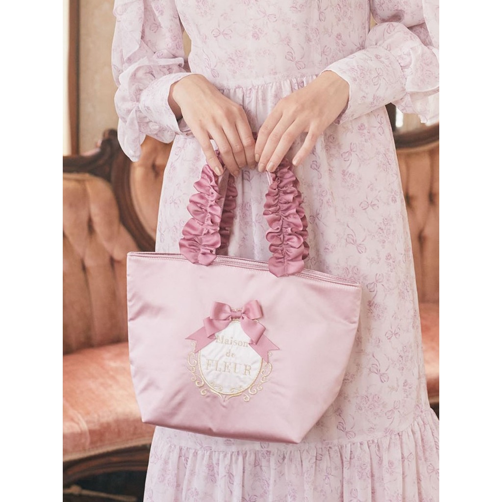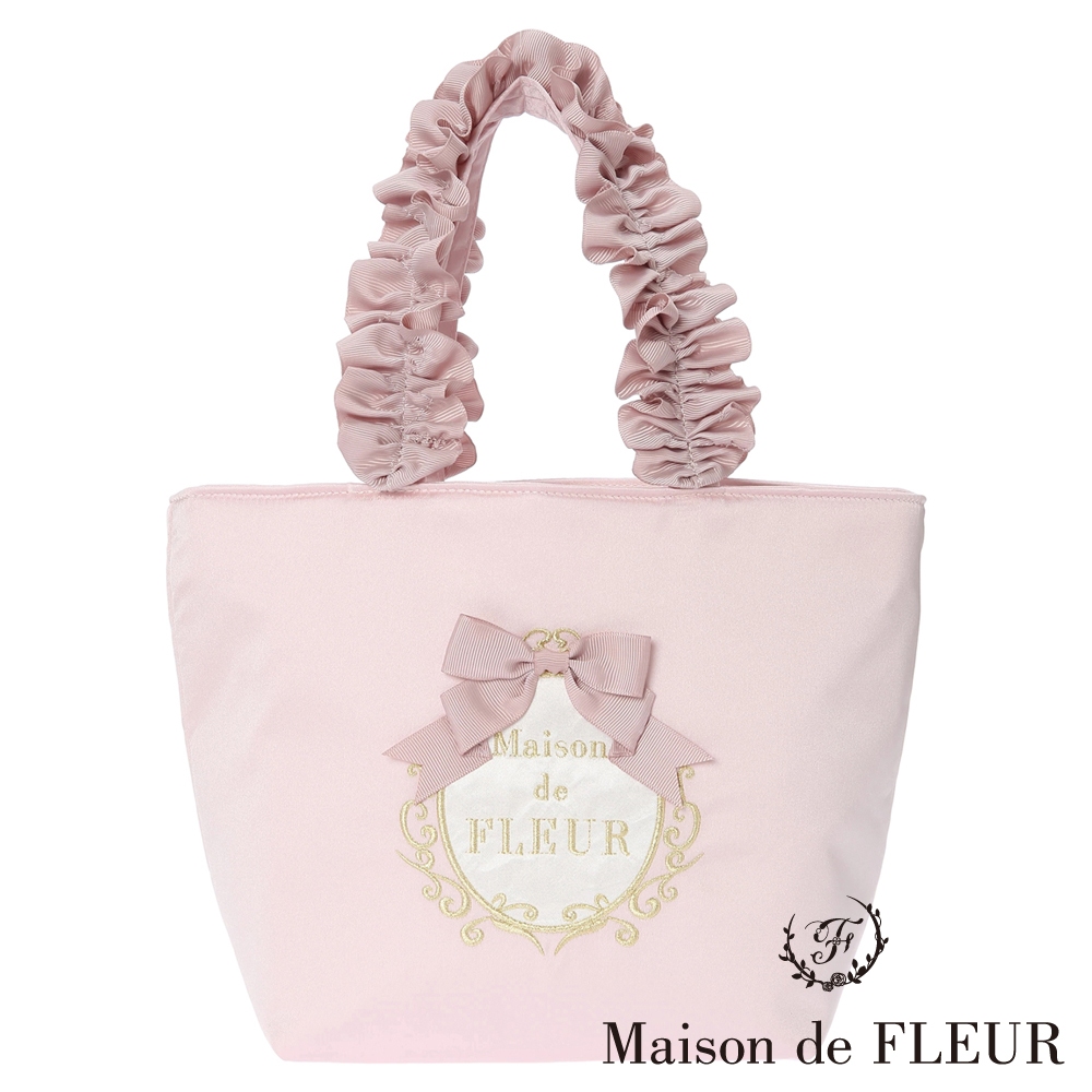 Maison de FLEUR 典雅金框刺繡荷葉褶邊托特包【S】(8A33F0J2800)粉紅色F|深粉紅色Fearth music&ecology Select Store