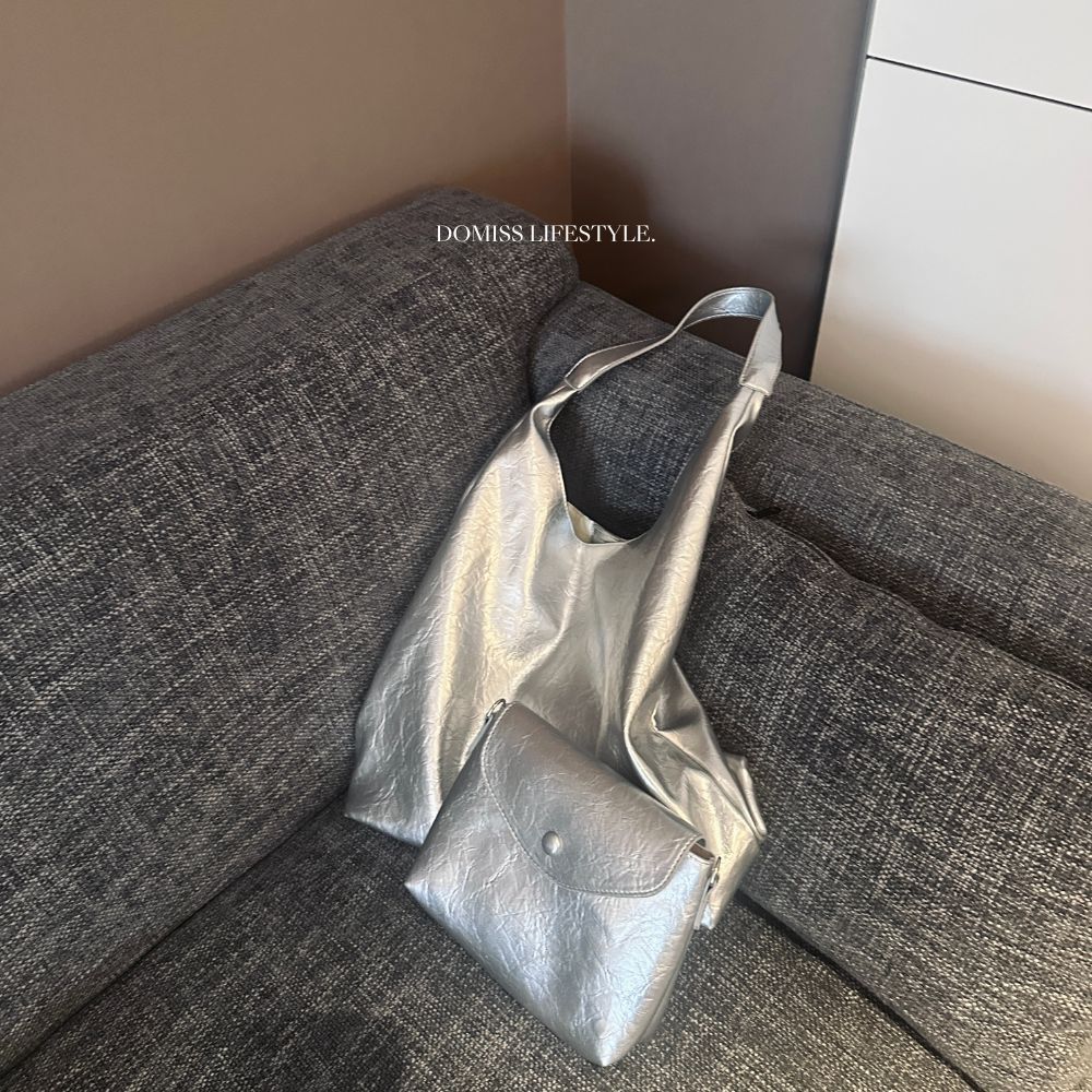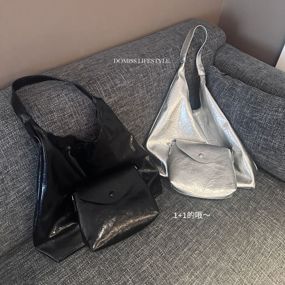 DOMISS大+小=漆皮感肩背提袋 兩件套組 肩背包 斜背包 (現+預)銀灰色|黑色DOMISS 朵蜜絲