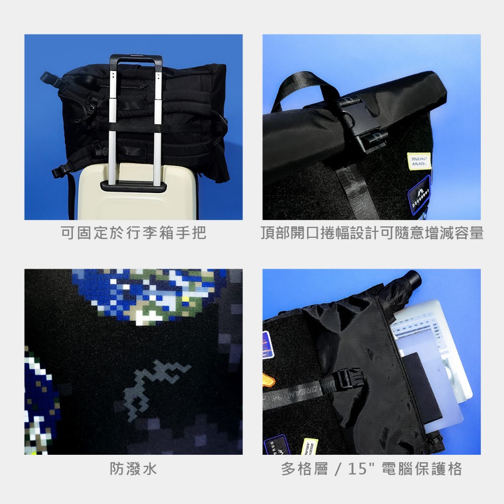DOUGHNUT官方賣場 15吋 Jetpack 電腦大後背包 防潑水 男包 DNA黑 (有魔鬼氈毛面)|地球儀 (有魔鬼氈毛面)DOUGHNUT | 台灣商城