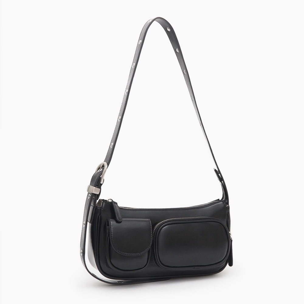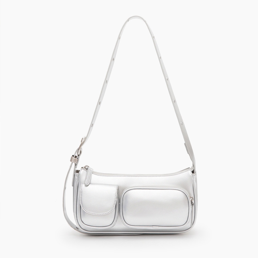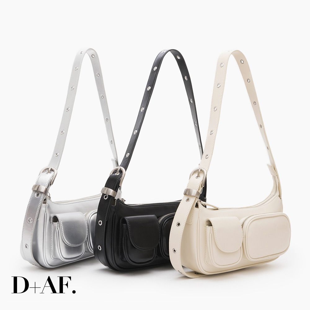 D+AF 包包 包 肩背包 [甜酷風格多口袋斜背包] 小包 3色 單肩包 女包黑|米白|銀D+AF|官方旗艦店
