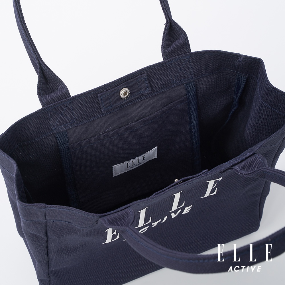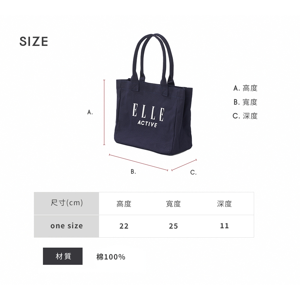 【ELLE ACTIVE】 時尚手提/單肩兩用純棉帆布袋 深藍色-EA24A2FN203-39FELLE ACTIVE 品牌旗艦館