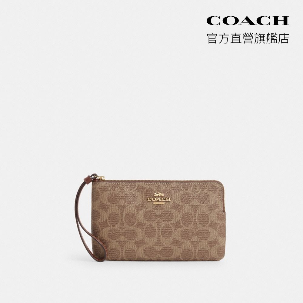 【COACH】經典Logo大號角拉鍊手腕包-IM/棕黃色/棕色(CZ277)|官方直營IM/棕黃色/棕色COACH官方旗艦店