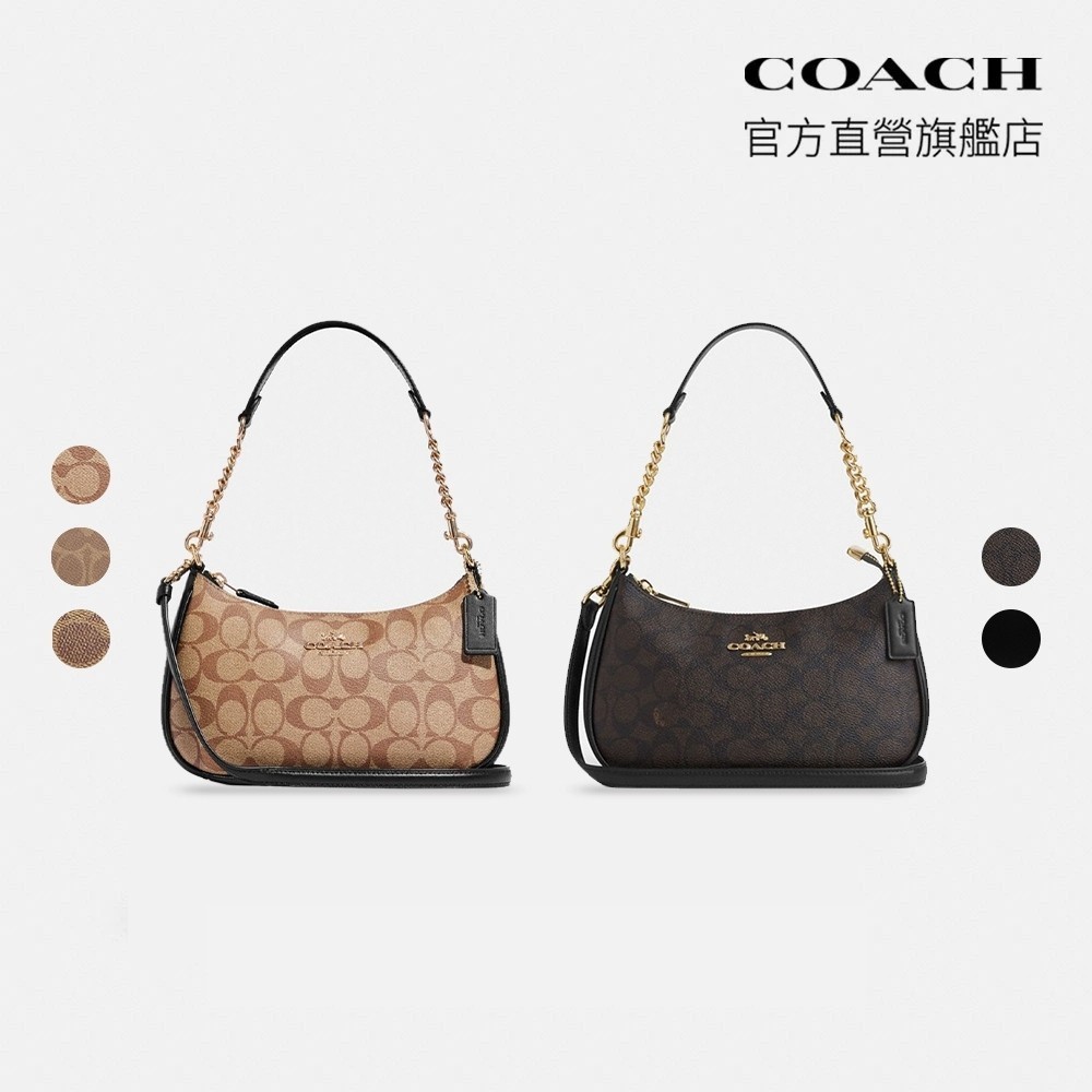 【COACH】TERI單肩包-多色任選(CJ941/CV933/CA548/CV938/CV939)|官方直營TERI/卡其色 黑色(大LOGO)|TERI/黑色|TERI/棕黃色 混合色|TERI/胡桃木色 黑色|TERI/沙黃色 灰褐色|TERI/棕黃色 棕色COACH官方旗艦店