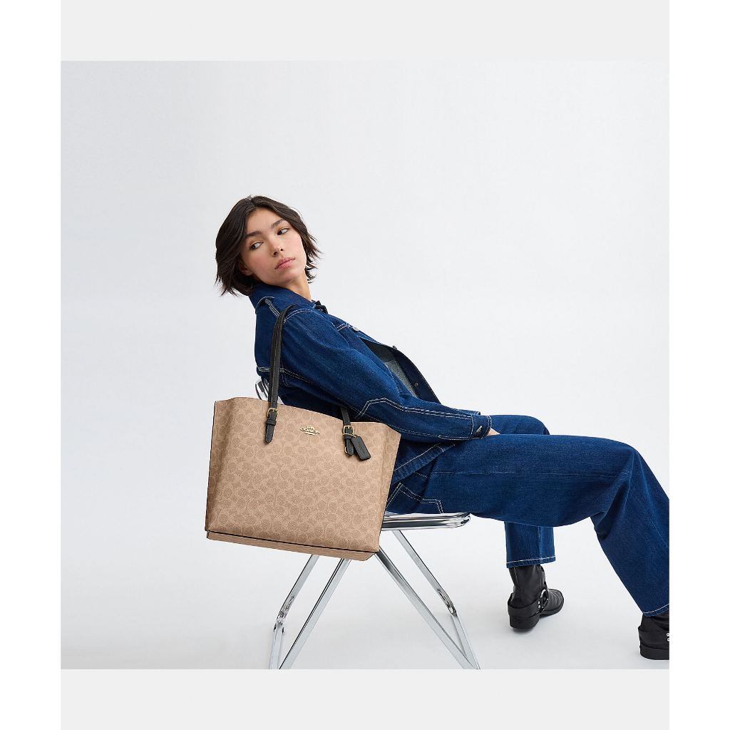 【COACH】MOLLIE托特包-多色任選(CV968/CV967)|官方直營IM/胡桃木色/黑色|IM/棕黃色/黑色|SV/沙黃色/灰褐色|IM/深褐色|SV/黑色COACH官方旗艦店