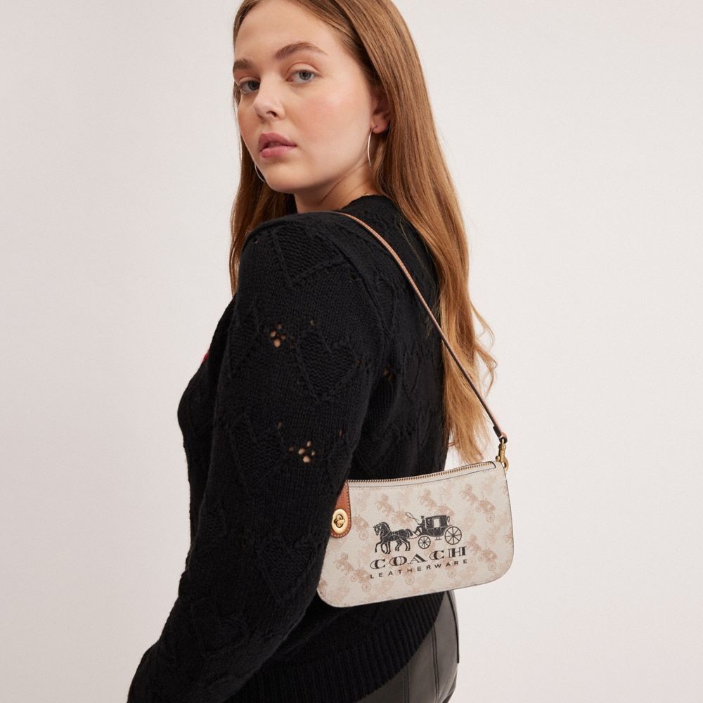 【COACH】PENN馬車圖案印花單肩手袋-B4/粉筆白色 高光琥珀色(CM712)|官方直營B4/粉筆白色 高光琥珀色COACH官方旗艦店