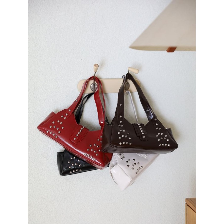 Codibook|韓國 COLOR iN ID 金屬鉚釘方形皮革肩背包[預購]肩背包 女裝象牙白,FREE|紅色,FREE|棕色,FREE|黑色,FREECodibook 韓國女裝購物平台