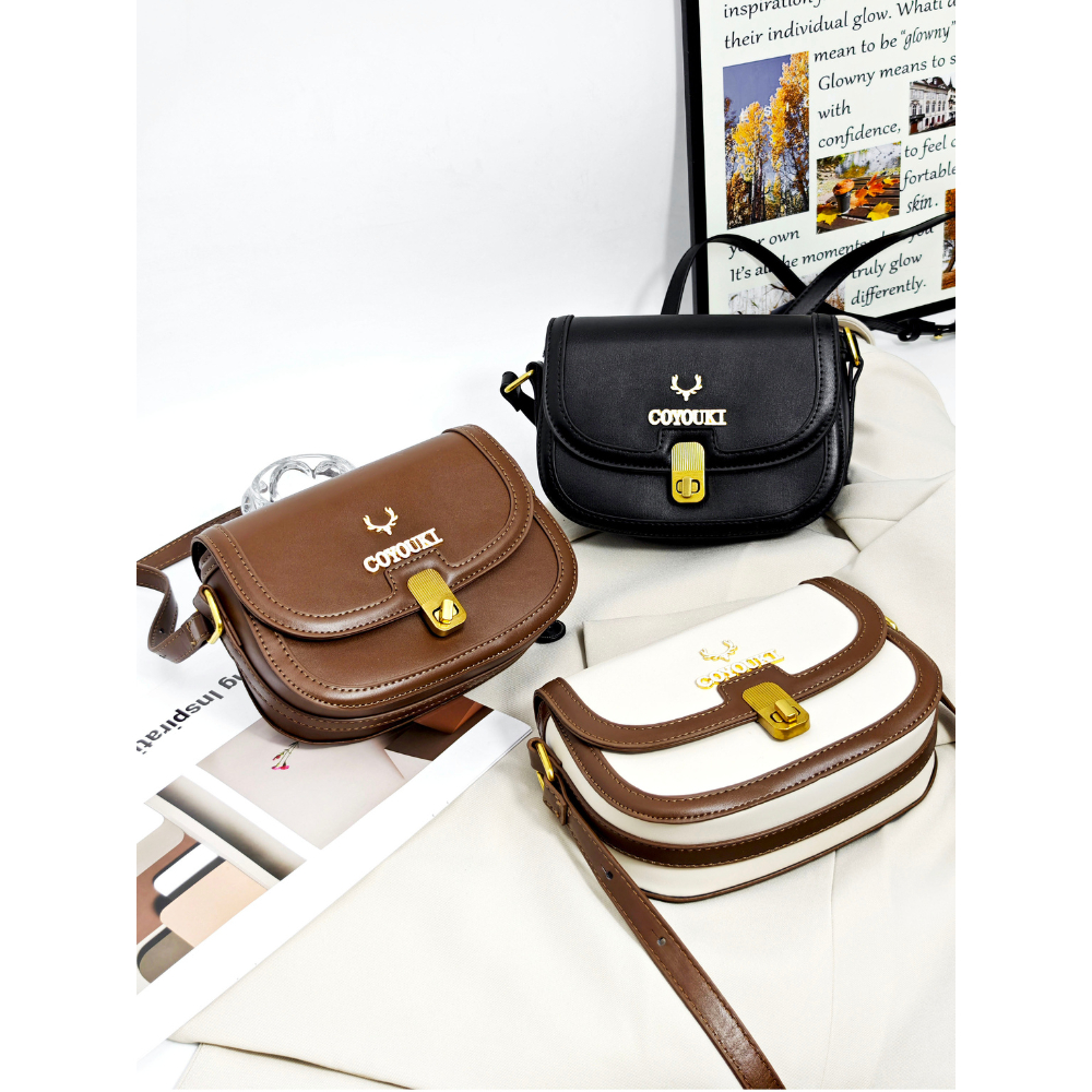 COYOUKI 女士包 純色鎖扣馬鞍包 新款韓版女包 時尚潮流單肩包 斜跨小包小眾質感 新款復古百搭【全館包包享保固】品牌黑色+保固半年|品牌米白色+保固半年|品牌咖啡+保固半年|黑色+保固半年|米白色+保固半年|紅色+保固半年|深棕色+保固半年COYOUKI日本設計師品牌