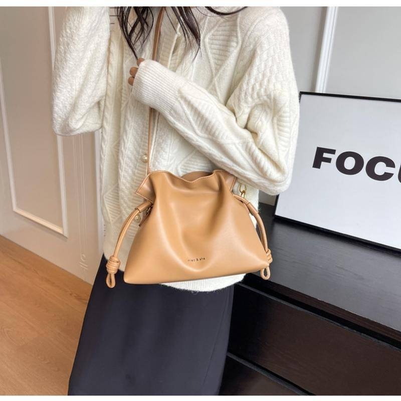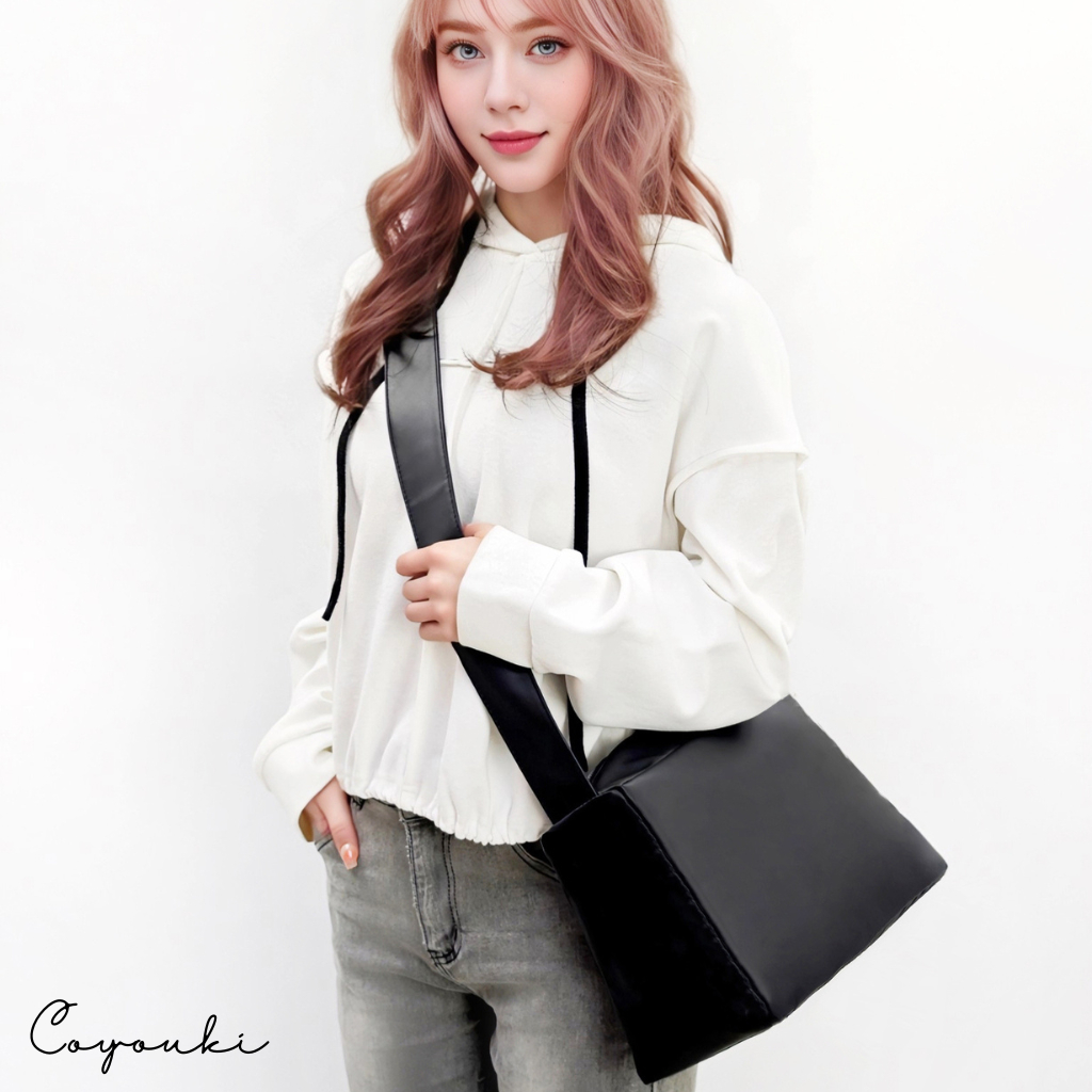 COYOUKI 高質感抽帶斜挎包 韓版潮流單肩包 新款時尚休閒簡約包 日常通勤百搭水桶包【全館包包享保固】米白色+保固半年|棕色+保固半年|黑色+保固半年COYOUKI日本設計師品牌