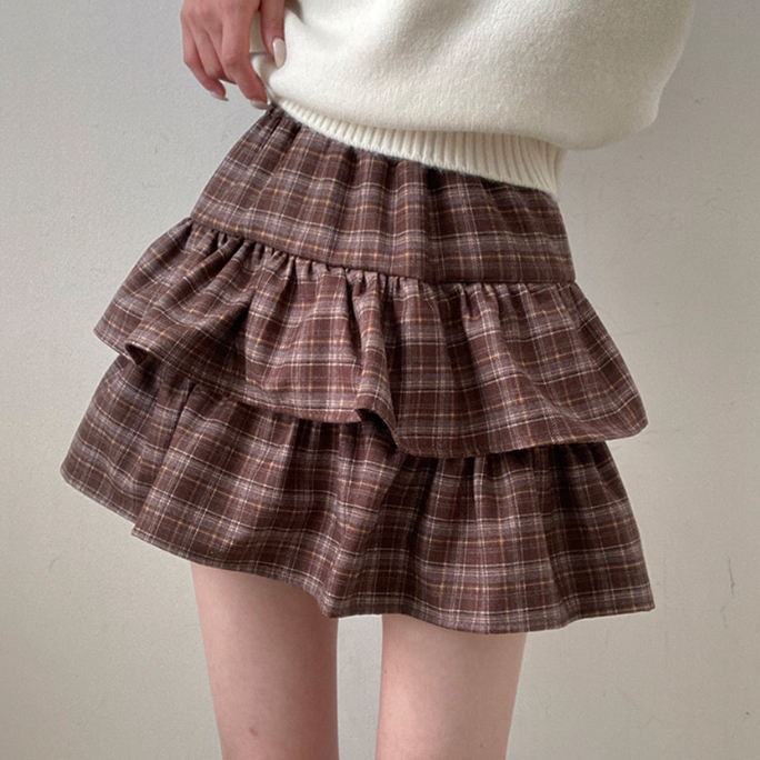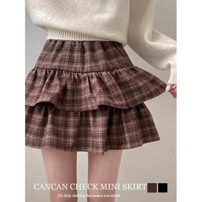 Codibook|韓國 gifteabox 格紋多層褶邊迷你裙[預購]裙子 蛋糕裙 女裝咖啡色,Free|黑色,FreeCodibook 韓國女裝購物平台