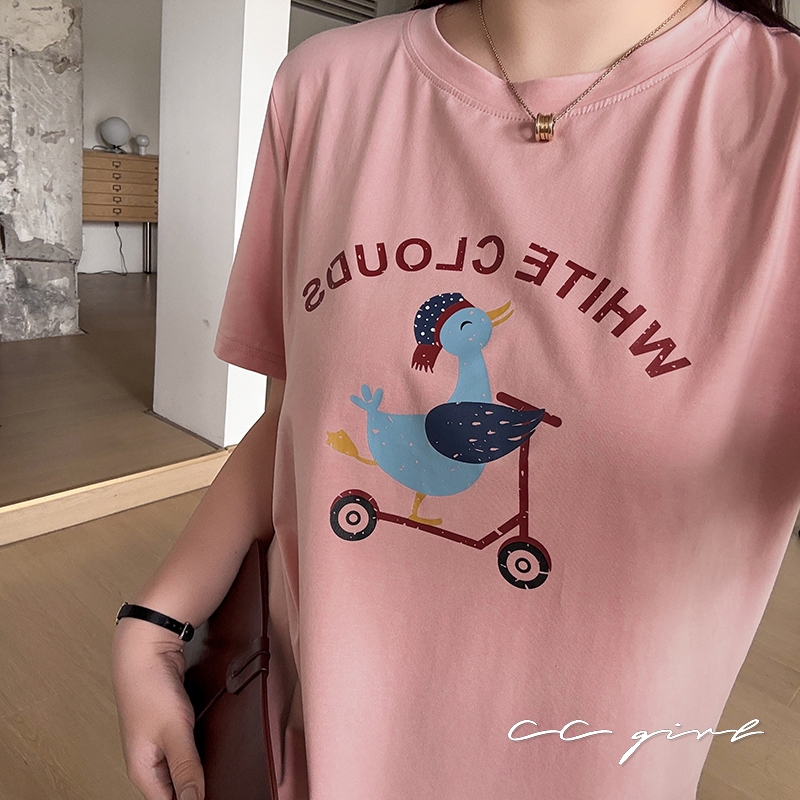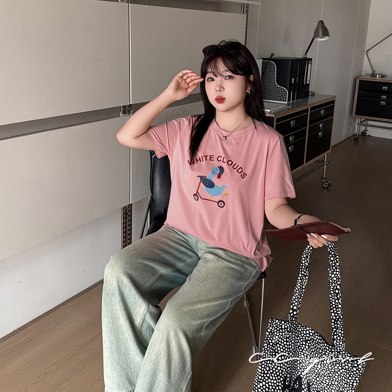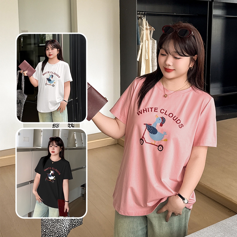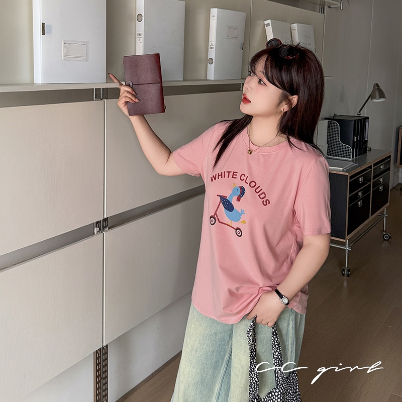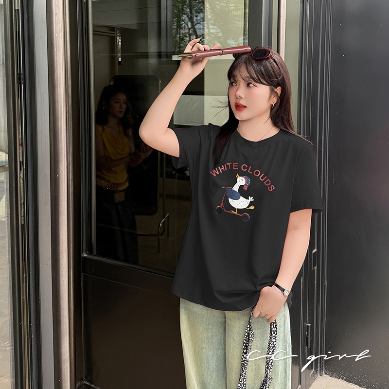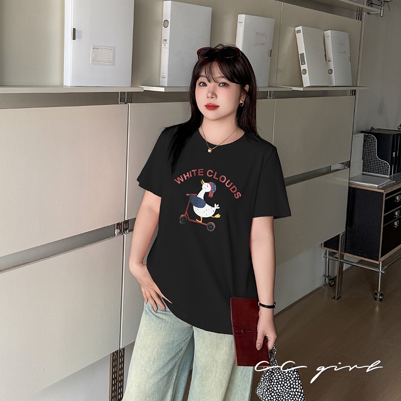 CCGIRL中大尺碼 唷呼呱呱~滑板鴨字母印花寬鬆圓領短袖上衣-共3色-適X~5L《20839》大尺碼女裝 中大尺碼上衣