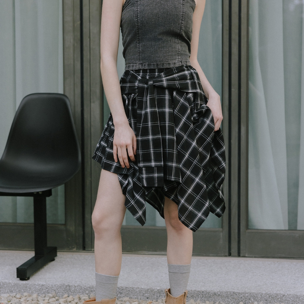 CC.DAILY-不規則綁帶格子裙(二色)-女【J2CO125】09黑,S|09黑,M|24棕,S|24棕,Mcaco_tw