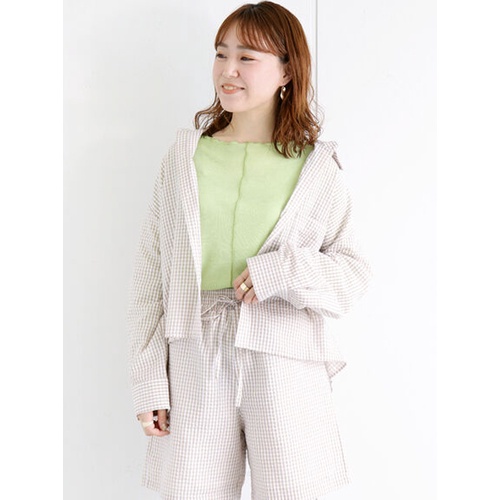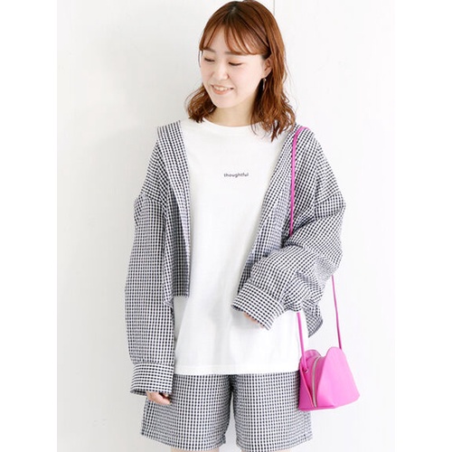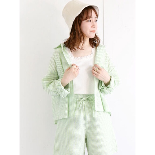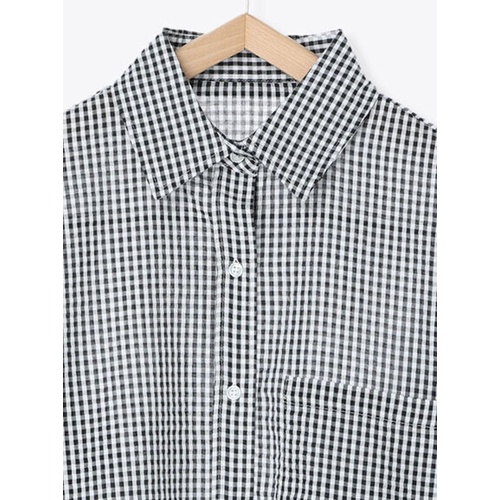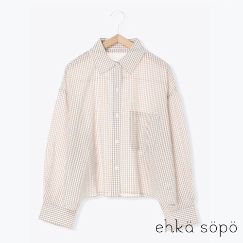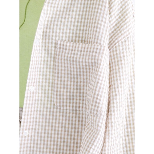 ehka sopo 細格紋圖案長袖口袋開襟襯衫(FF22L0A0480)黑色F|米色F|綠色FShirts & Blousesearth music&ecology Select Store