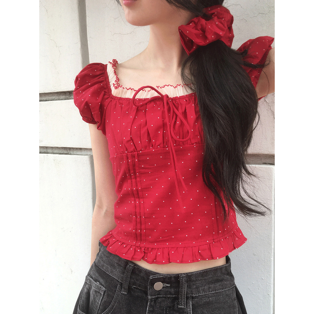 Codibook|韓國 ondeed 紅色點點緞帶蕾絲抓褶荷葉邊後鬆緊露肩短袖襯衫[預購]雪紡襯衫 女裝藏青,FREE|米褐色,FREE|紅,FREE|象牙白,FREEShirts & BlousesCodibook 韓國女裝購物平台