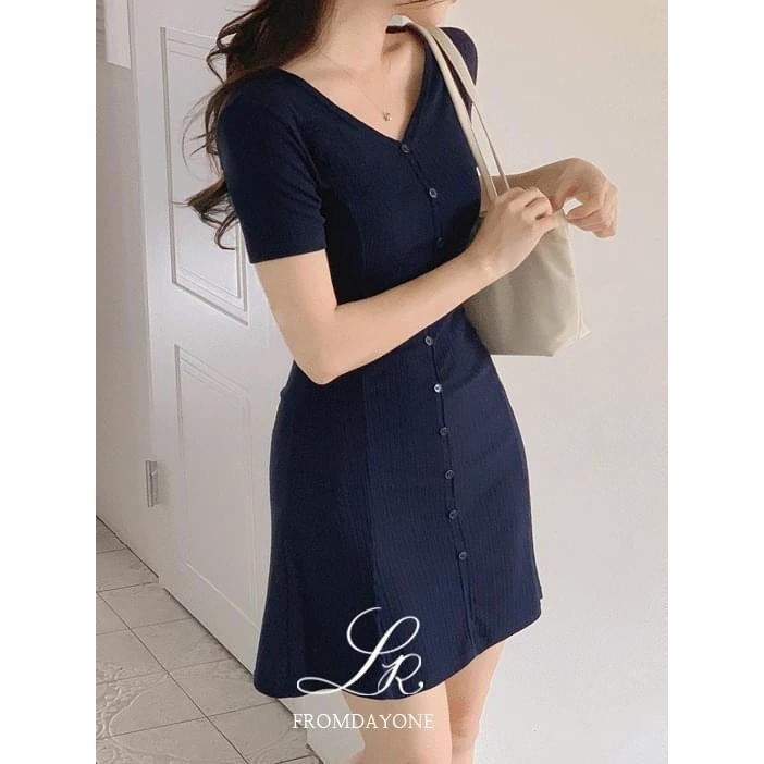 Codibook|韓國 FROMDAYONE 顯瘦坑條短版洋裝[預購]迷你短洋裝 女裝深灰色|海軍藍|黑色Codibook 韓國女裝購物平台