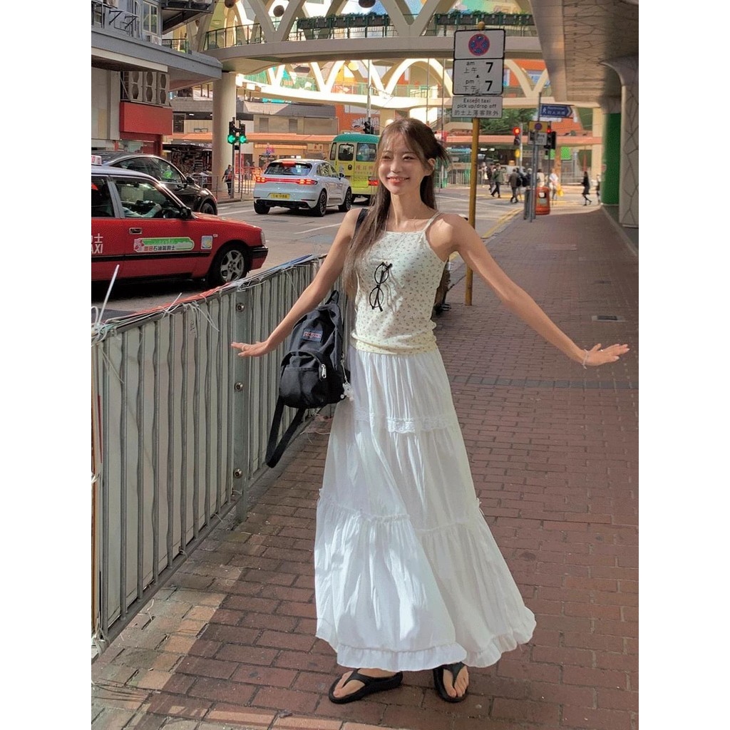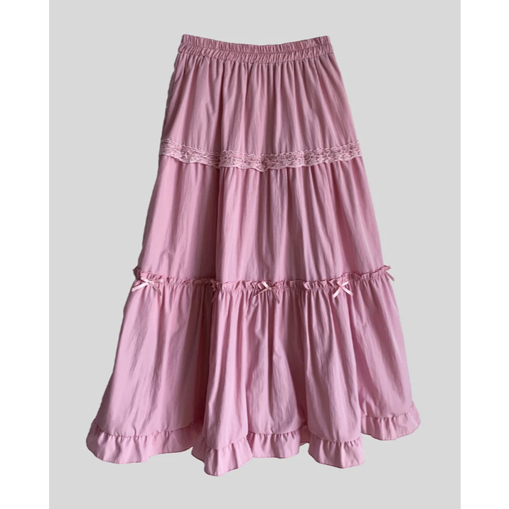 Codibook|韓國 MINGPIECE 大阪褶皺尼龍荷葉邊蝴蝶結褶摺長裙[預購]長洋裝 女裝白色,free|黑色,free|粉紅色,freeCodibook 韓國女裝購物平台