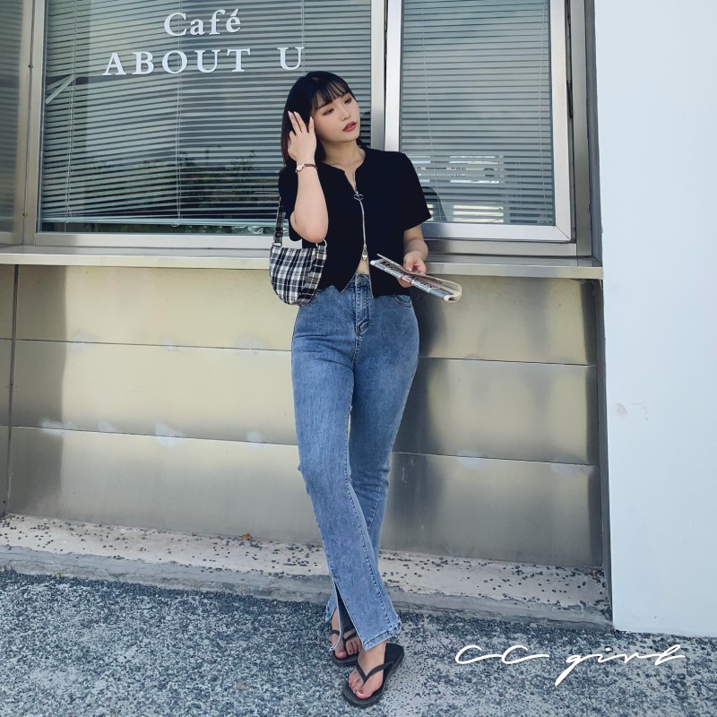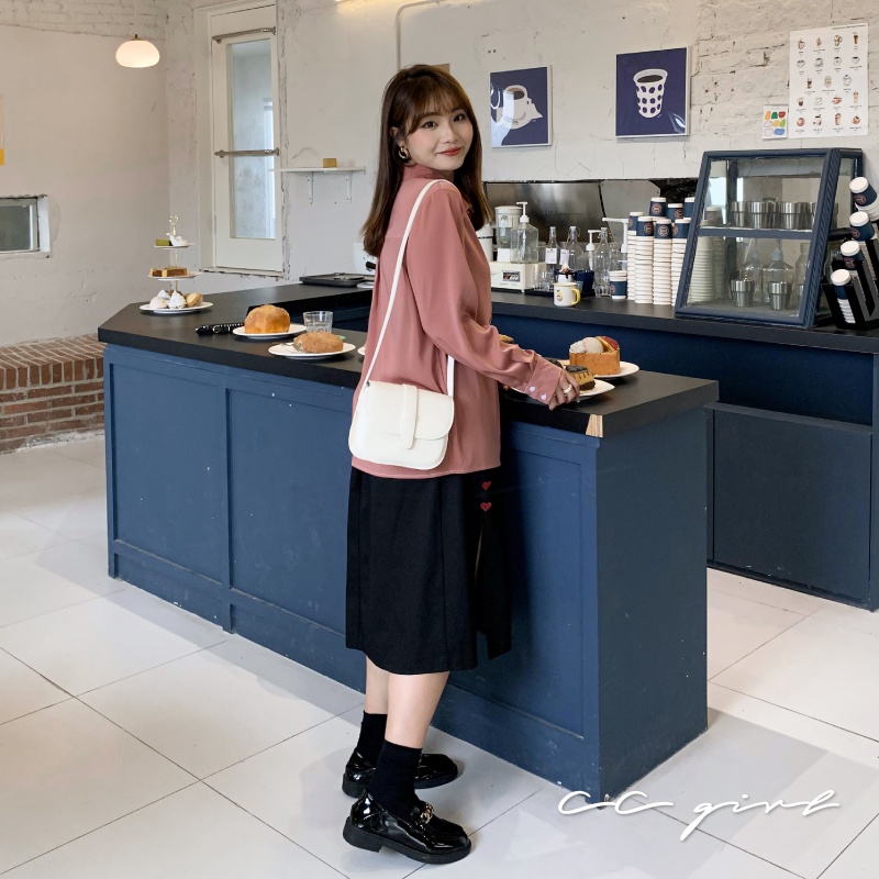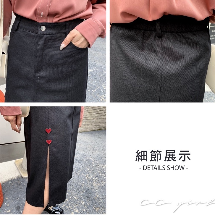 CCGIRL中大尺碼 小愛心♡♡開衩設計牛仔A字裙(有後鬆緊+真口袋)-共2色-適M~5L《31307》大碼女裝