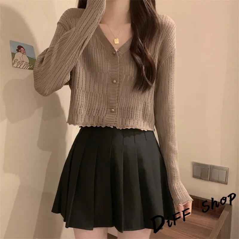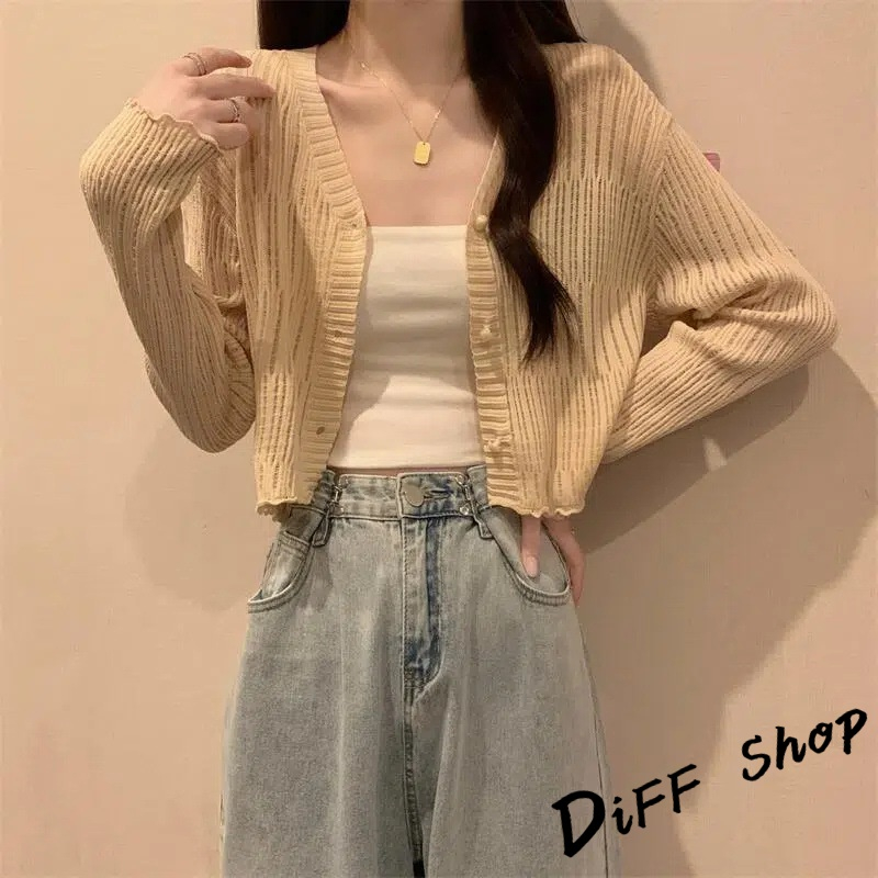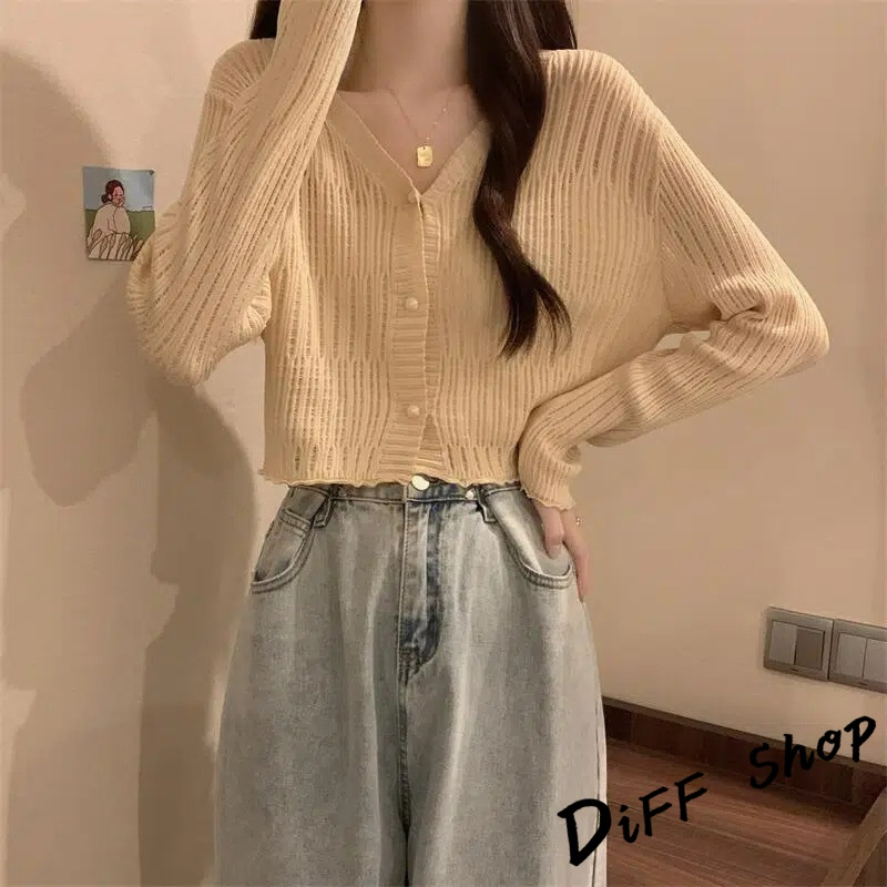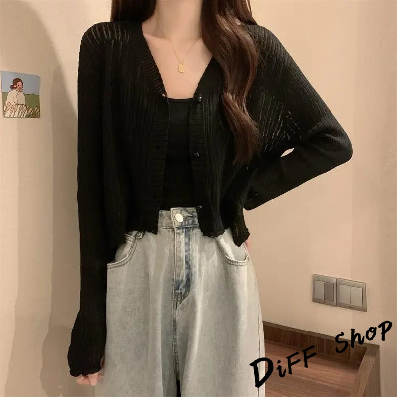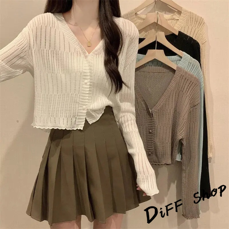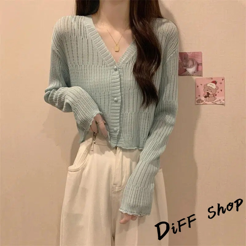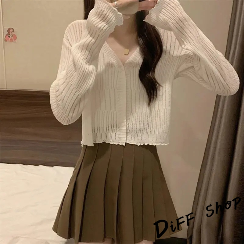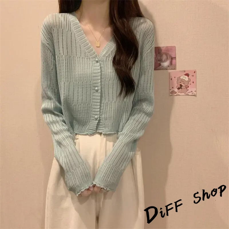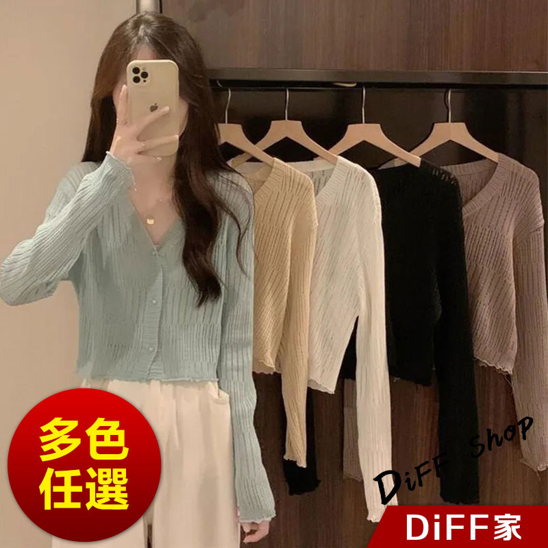 【DIFF】韓版薄款V領防曬冰絲針織外套 上衣 女裝 衣服 外套 長袖上衣 薄外套 罩衫 防曬外套 短版外套【J278】【J278】杏色|【J278】黑色|【J278】白色|【J278】藍色|【J278】咖啡DiFF shop