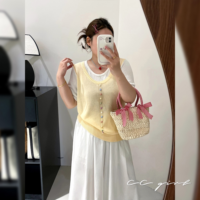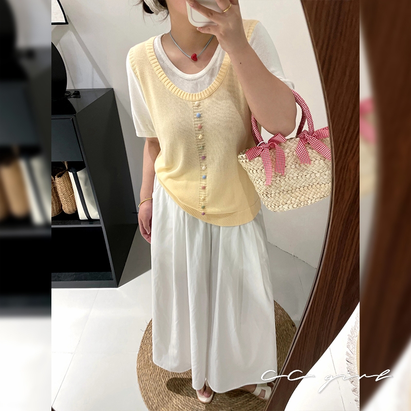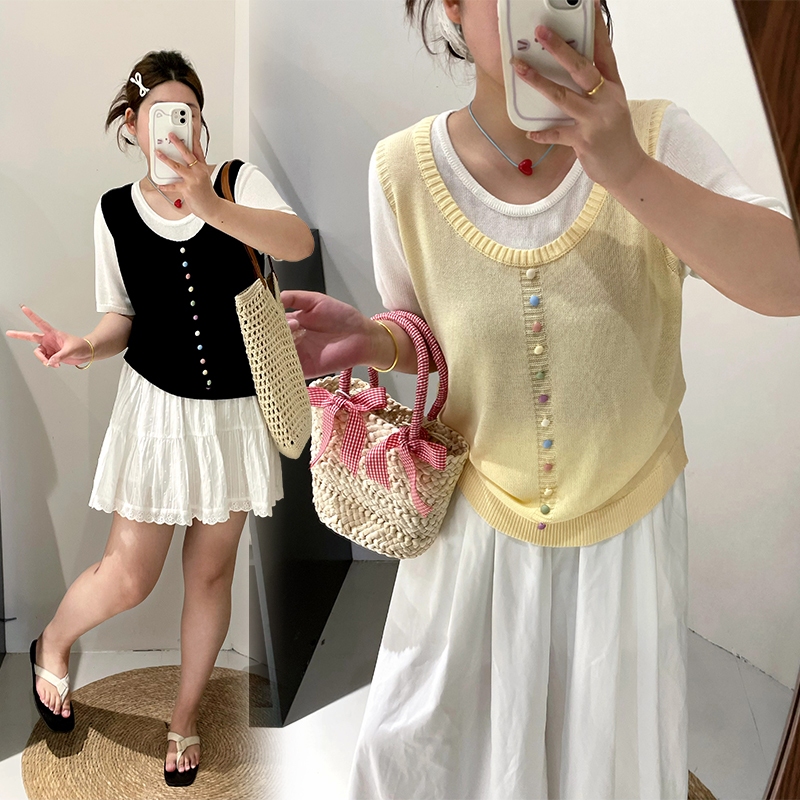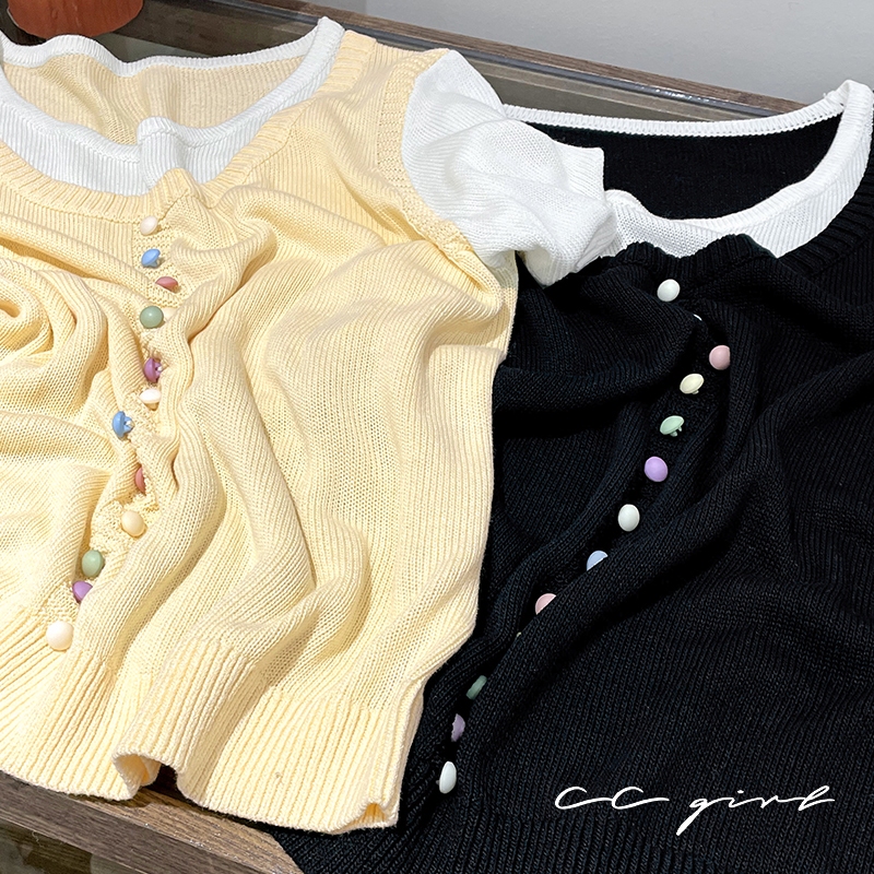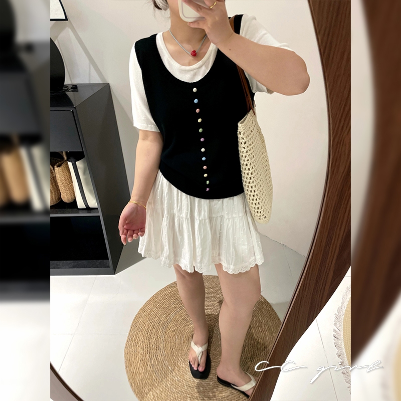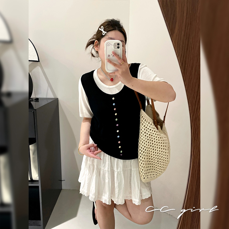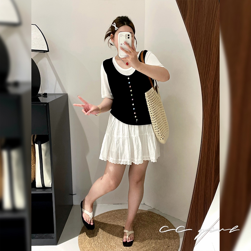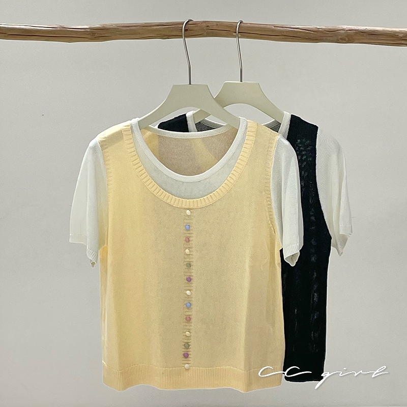 CCGIRL中大尺碼 彩釦假兩件圓領短袖針織上衣(釦子不可開)共2色-適XL~4L《20857》大尺碼女裝中大尺碼上衣彩釦點綴假兩件-經典黑,XL(建議XL和2L適穿)|彩釦點綴假兩件-經典黑,2L(建議2L和3L適穿)|彩釦點綴假兩件-經典黑,3L(建議3L和4L適穿)|彩釦點綴假兩件-小雞黃,XL(建議XL和2L適穿)|彩釦點綴假兩件-小雞黃,2L(建議2L和3L適穿)|彩釦點綴假兩件-小雞黃,3L(建議3L和4L適穿)CCGIRL中大尺碼女裝