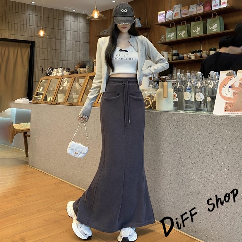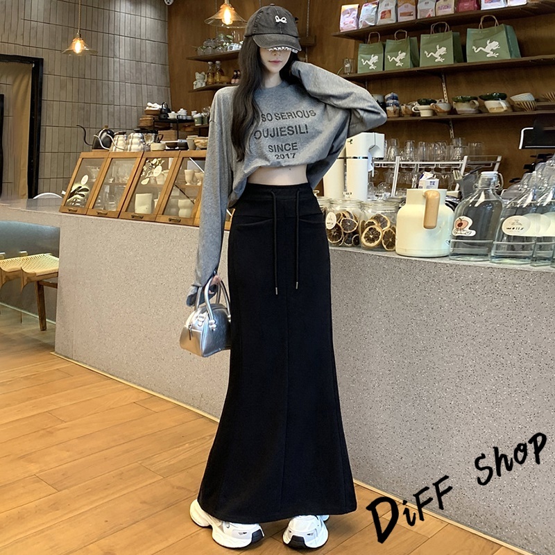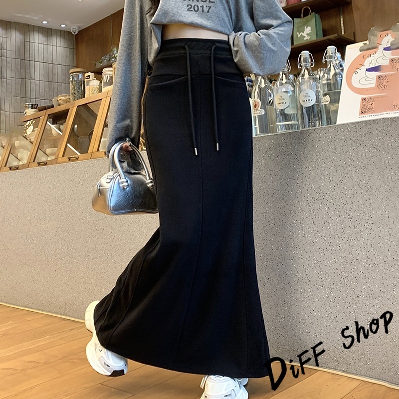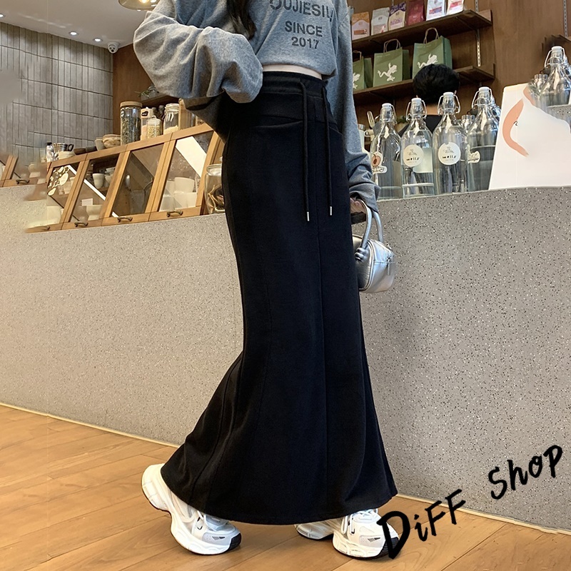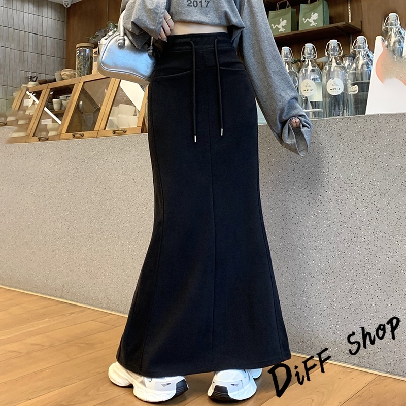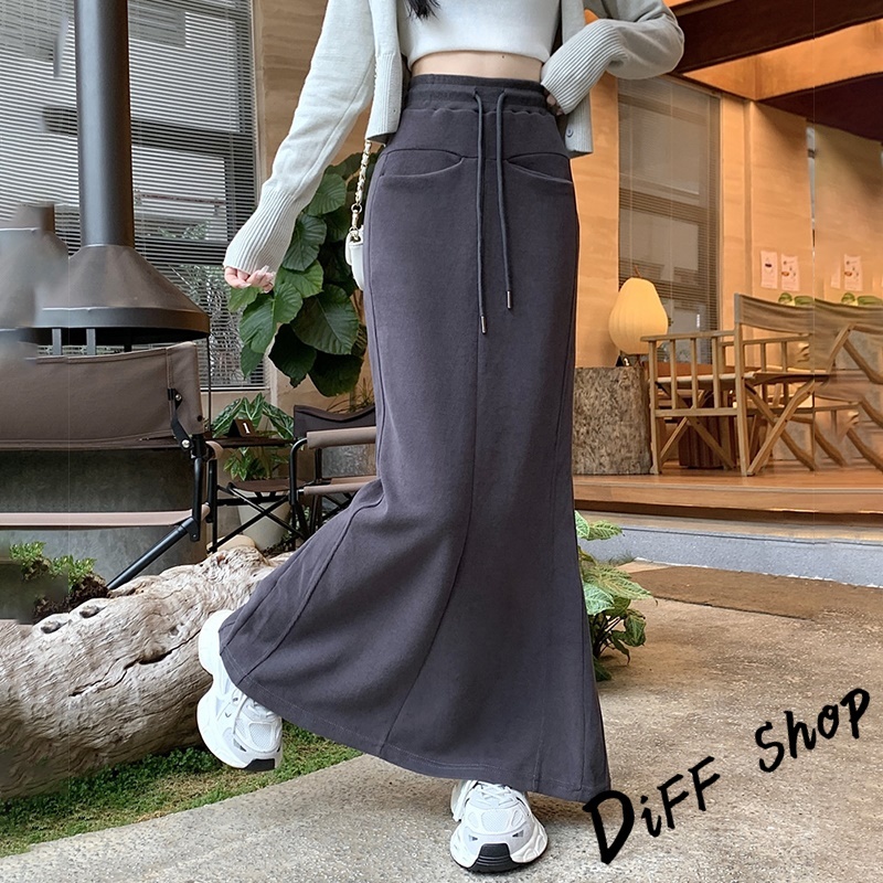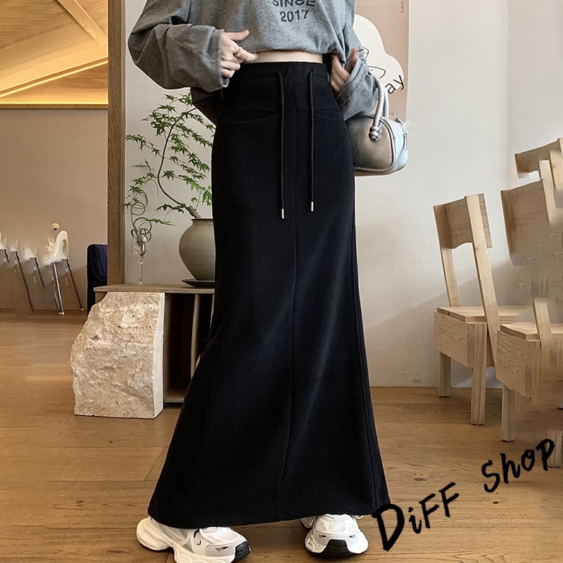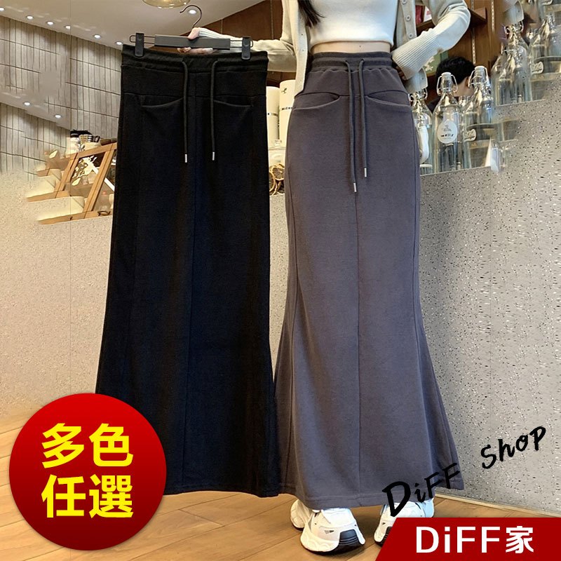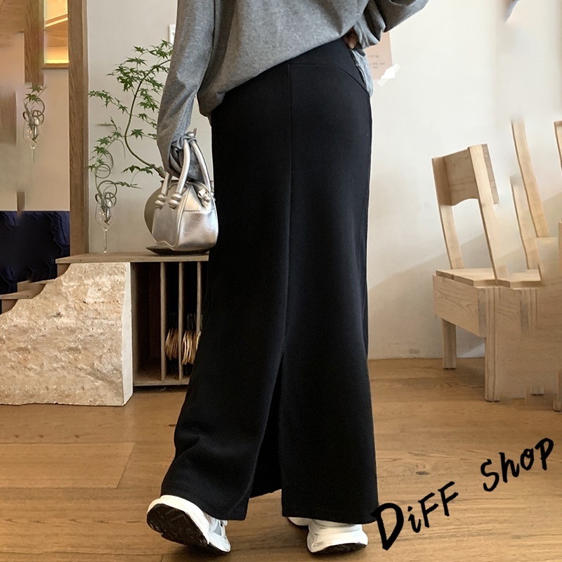 【DIFF】韓版高腰顯瘦開叉半身裙 魚尾裙 寬褲 長裙 褲子 裙子 冬天女裝 秋冬女裝 長褲 女裝 針織長裙【P361】【P361】黑色|【P361】深灰色DiFF shop