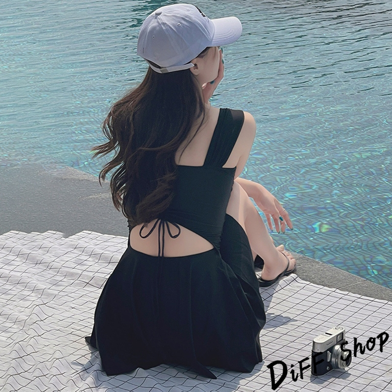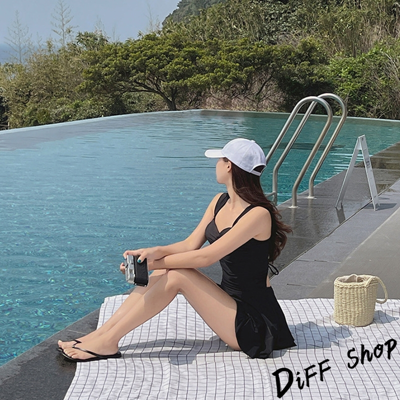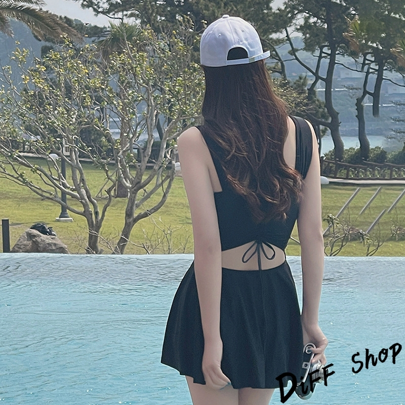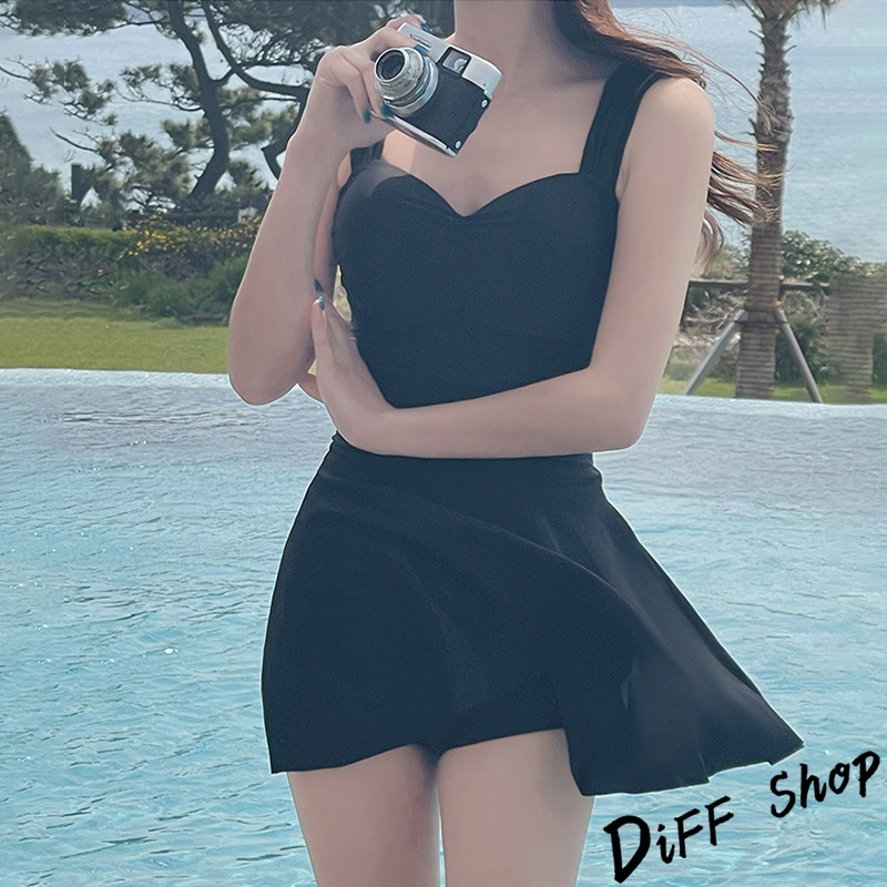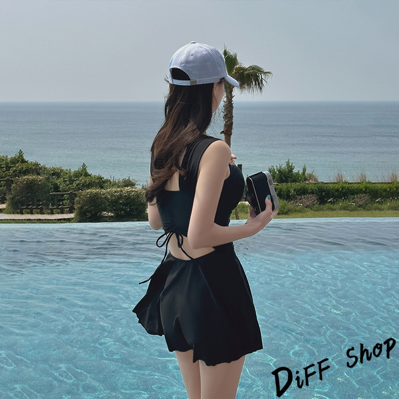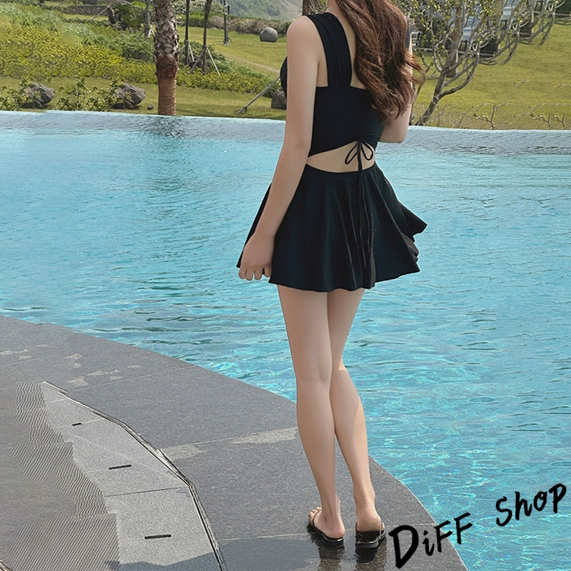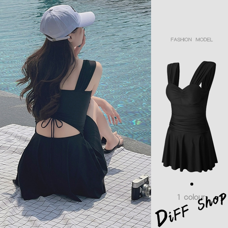 【DIFF】韓版顯瘦V領露背百褶裙連身泳衣 保守泳衣 泳裝 套裝 上衣 比基尼 女生泳衣 女裝 S199【S133】【S199】黑色OthersDiFF shop