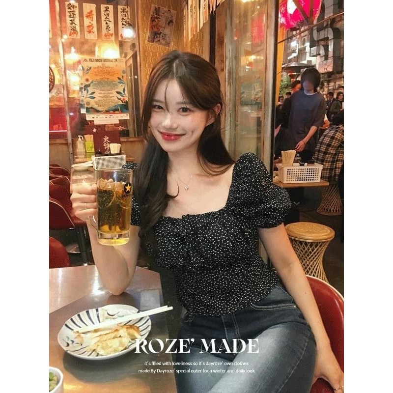 Codibook|韓國 Dayroze 波點2way露肩方領短袖襯衫[預購]短袖上衣 女裝黑色,S|黑色,MT-shirtsCodibook 韓國女裝購物平台