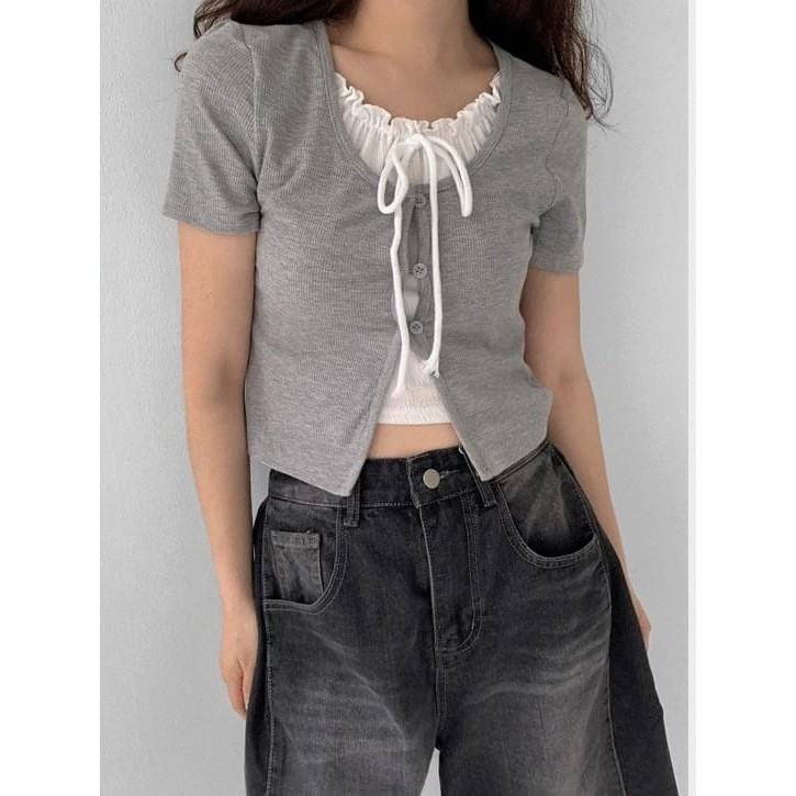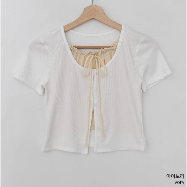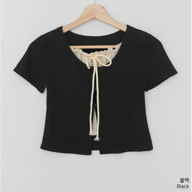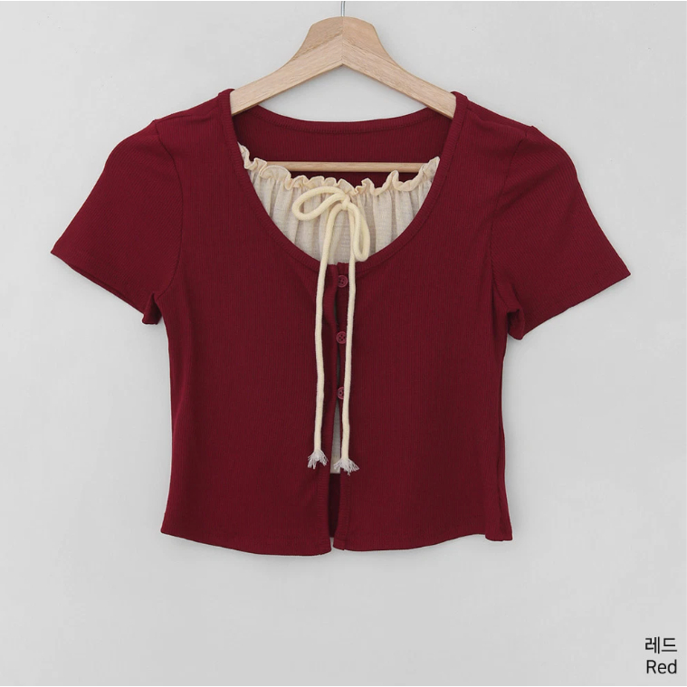 Codibook|韓國 Qnigirls 雙層疊穿喇叭袖短版T恤[預購]短袖上衣 針織外套 女裝象牙白|紅色|灰色-JH 著用|黑色-JH 著用T-shirtsCodibook 韓國女裝購物平台