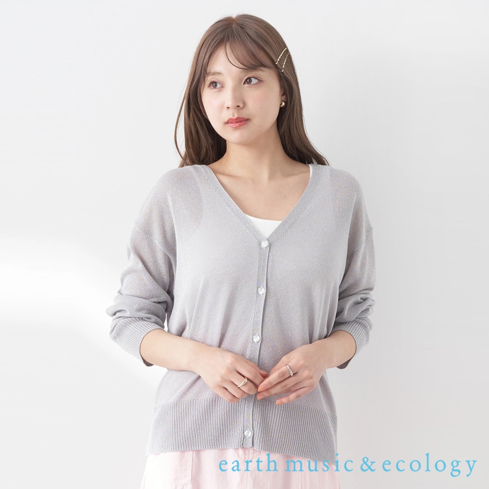 earth music&ecology 金蔥光澤感V領開襟罩衫(1L41L2D0300)白色F|淡灰色F|粉紅色F|棕色FJacketsearth music&ecology Select Store