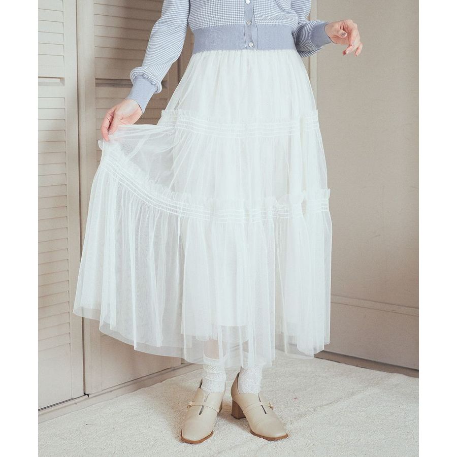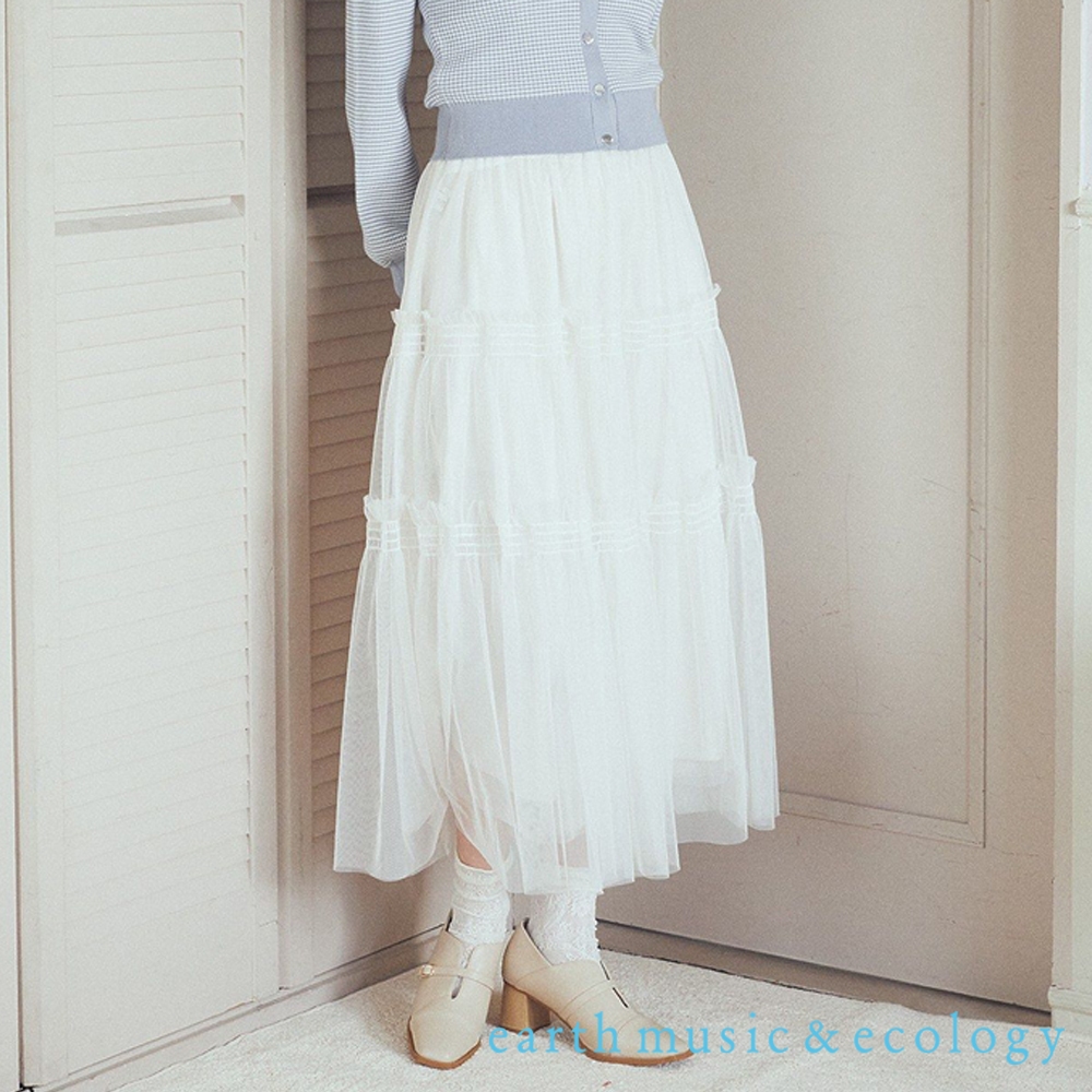 earth music&ecology 荷葉摺邊分層式剪裁薄紗長裙(01000113100)象牙色F|黑色F|黃色Fearth music&ecology Select Store