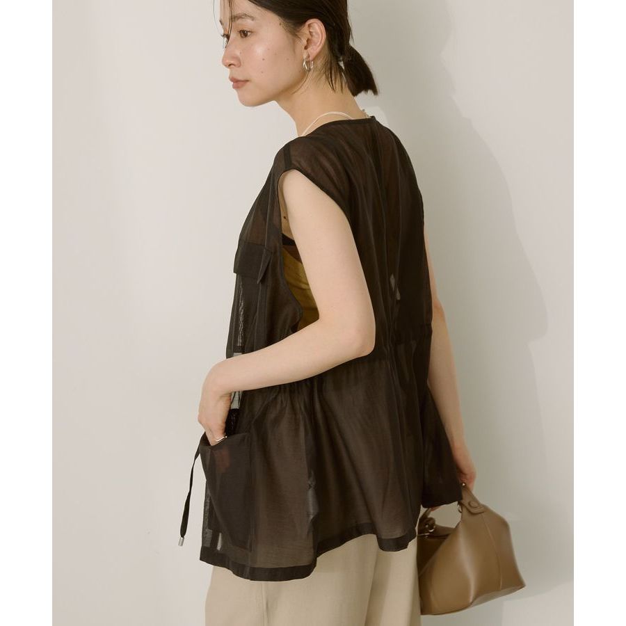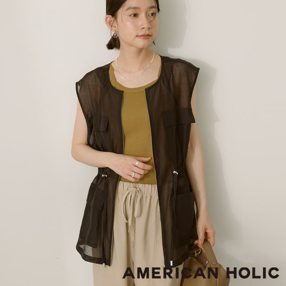 AMERICAN HOLIC 透明口袋設計抽繩背心(0H000006000)黑色F|橄欖色FVestsearth music&ecology Select Store