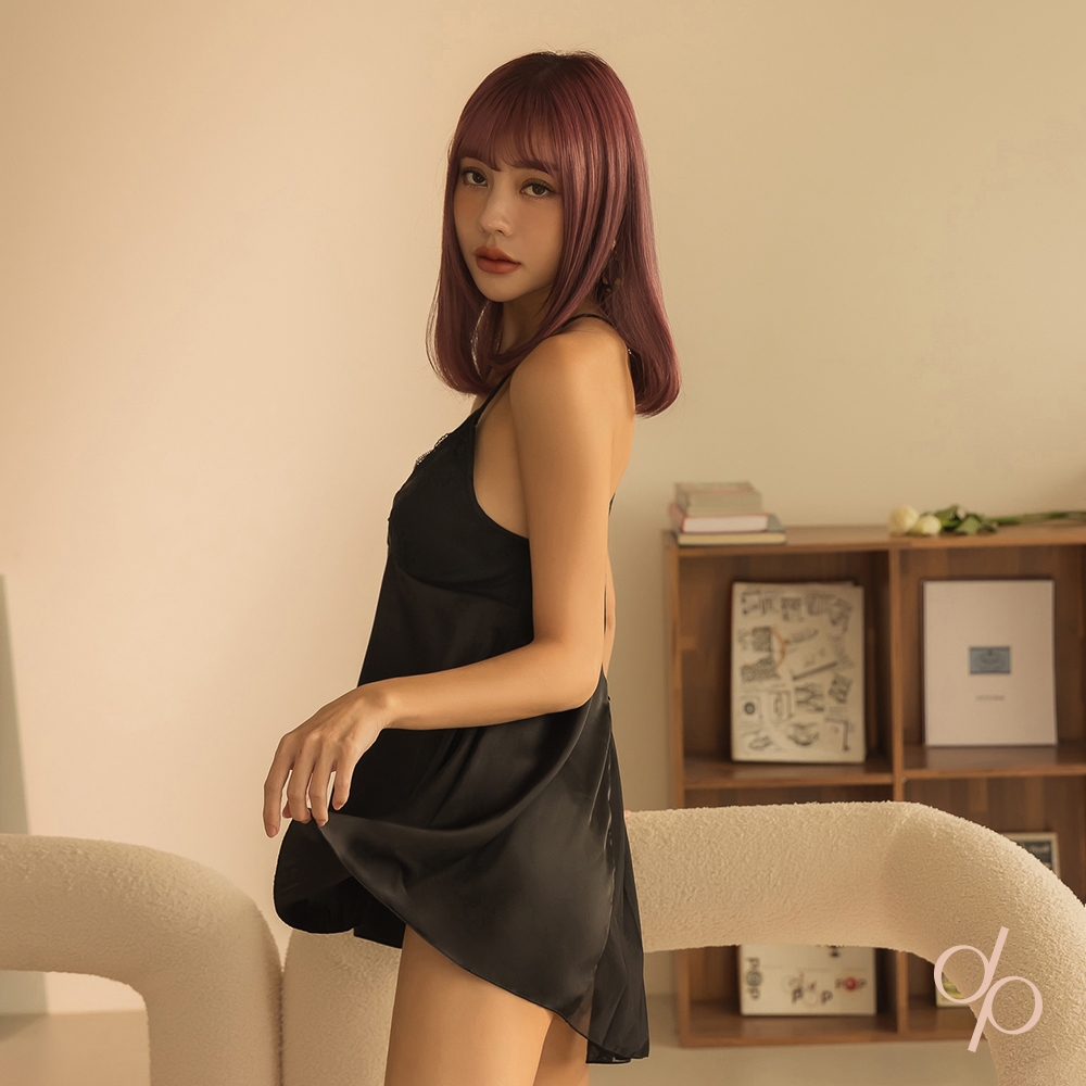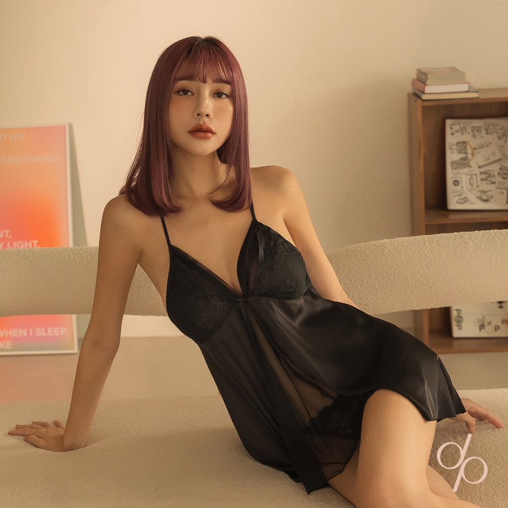 【DEPIC】性感緞面薄紗蕾絲大U美背交叉睡衣裙 (黑色)|dp select黑色M|黑色L|黑色XLSetsDEPIC