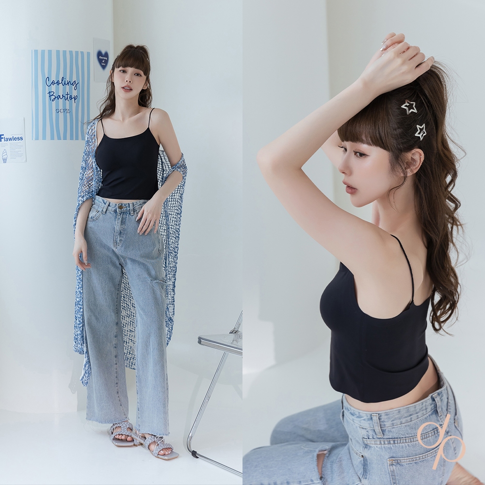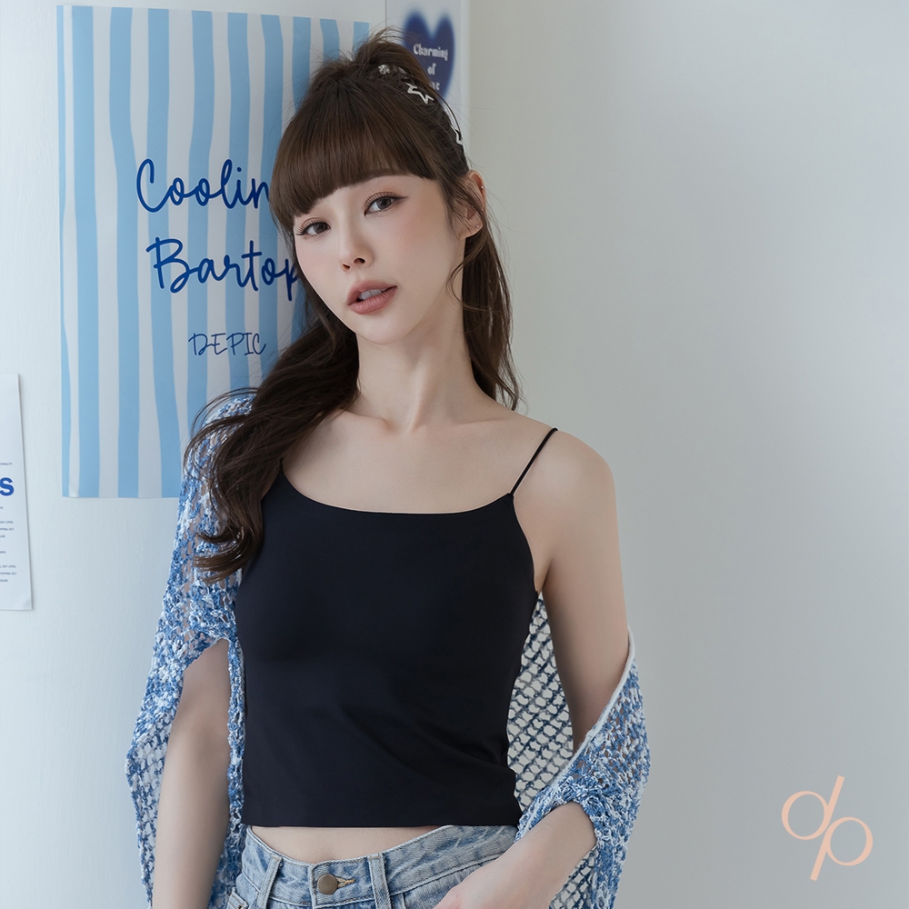 【DEPIC】輕盈聚攏貼合無痕冰絲細肩BRA TOP (黑色)|dp select黑色Tube TopsDEPIC
