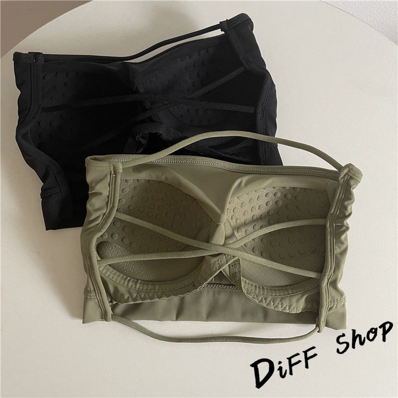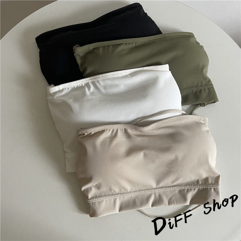 【DIFF】韓版美背冰絲平口背心 帶胸墊免穿內衣 上衣 小可愛 女裝 背心女 衣服【V227】【V227】黑色|【V227】白色|【V227】軍綠|【V227】杏色Tube TopsDiFF shop